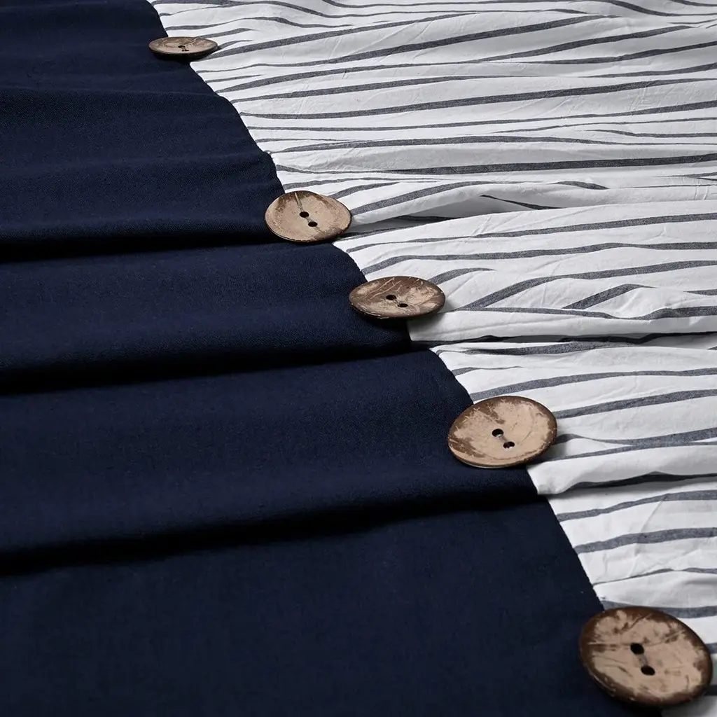 Beige and Navy Stripe Shower Curtain for Bathroom, 72x72 in