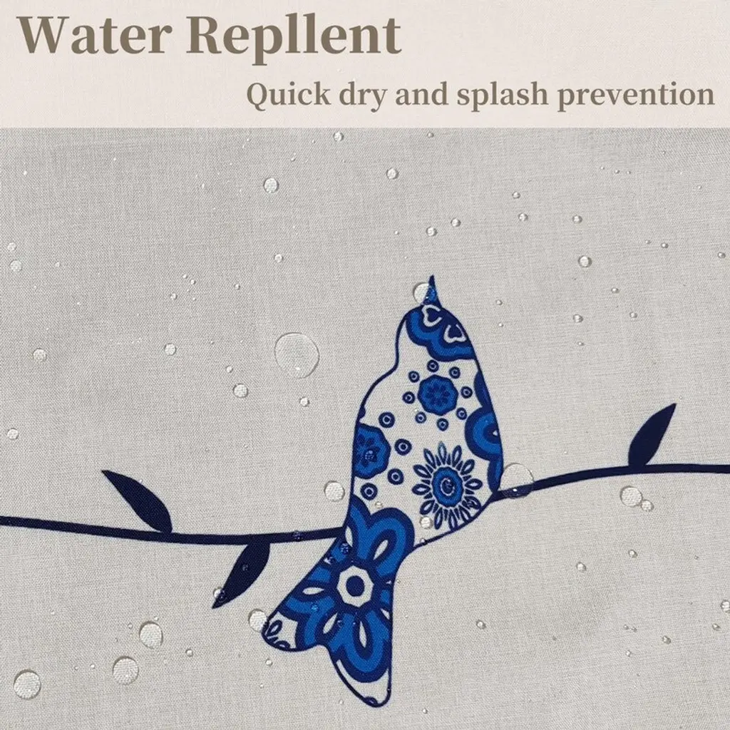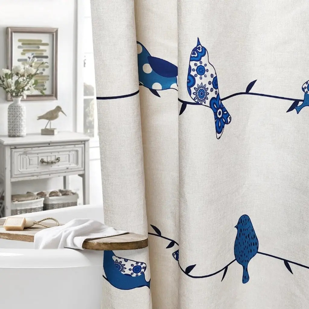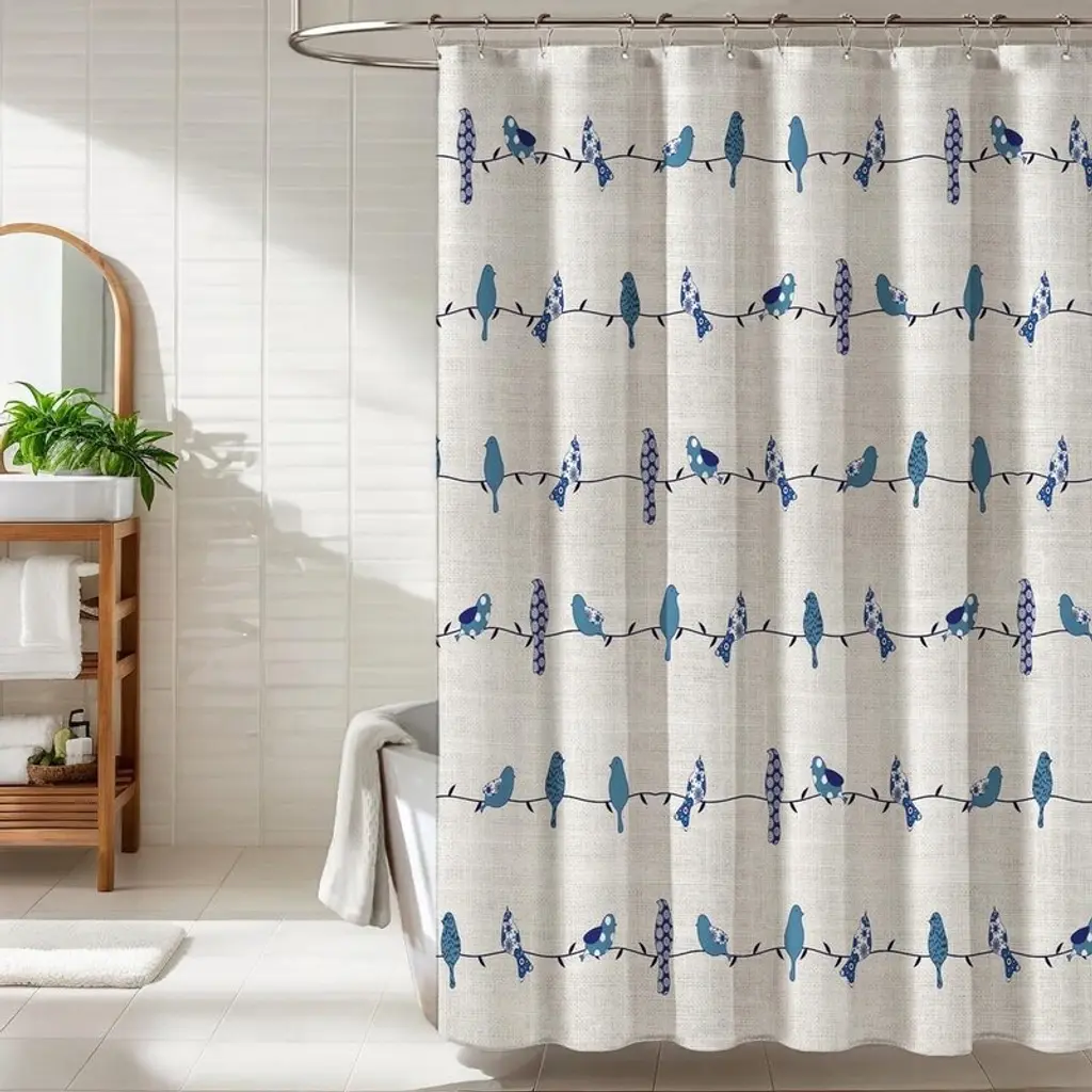 Bird Linen Shower Curtain, Farmhouse Vintage Bathroom Curtain, Rustic Bathroom Decorative Waterproof Fabric - Blue Boho Bird