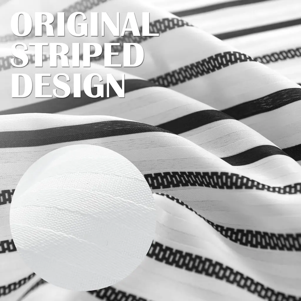 Black & White Striped Shower Curtain, 70"x72", Waterproof, with Hooks
