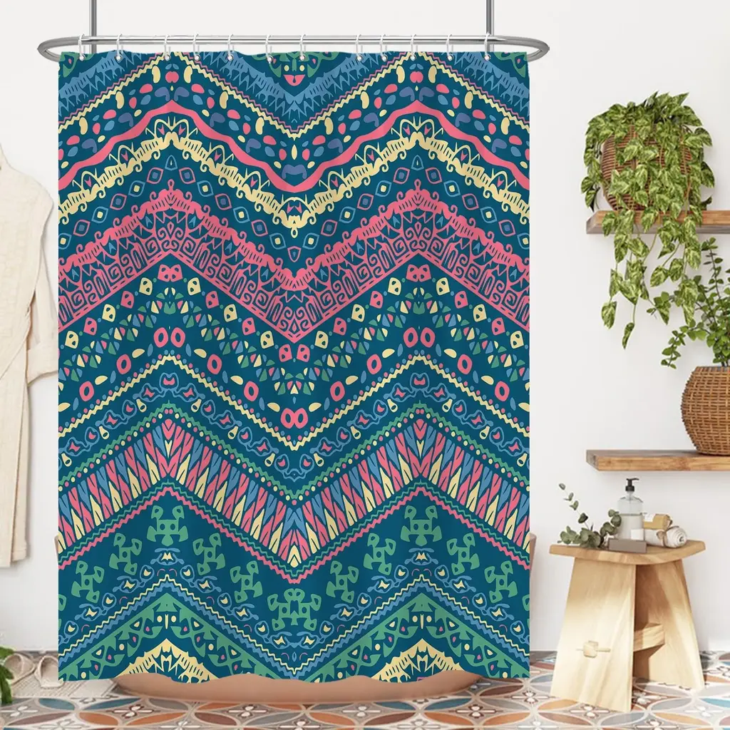 Blue Bohemian Shower Curtain, 72"x72", Colorful Stripe Fabric