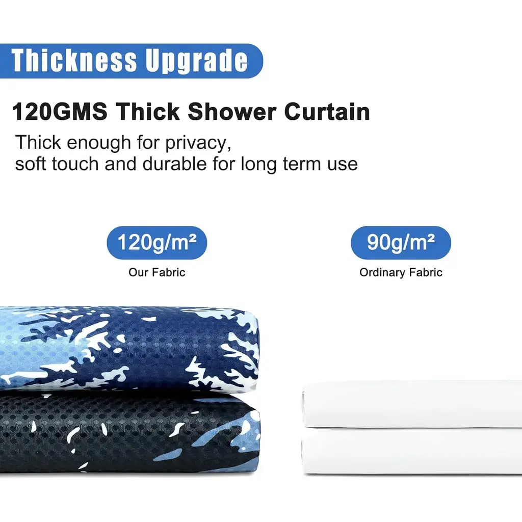 Blue Misty Forest Mountain Shower Curtain, Waterproof, 72 x 72 Inches