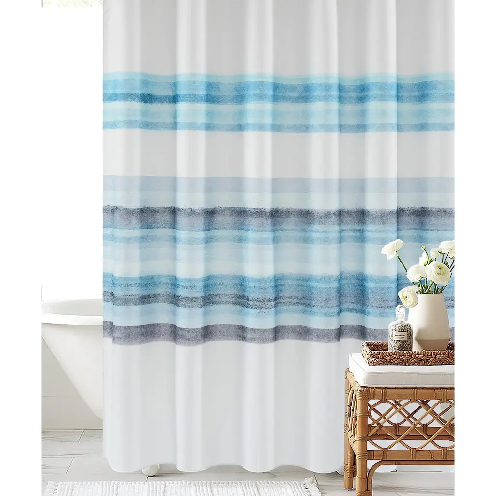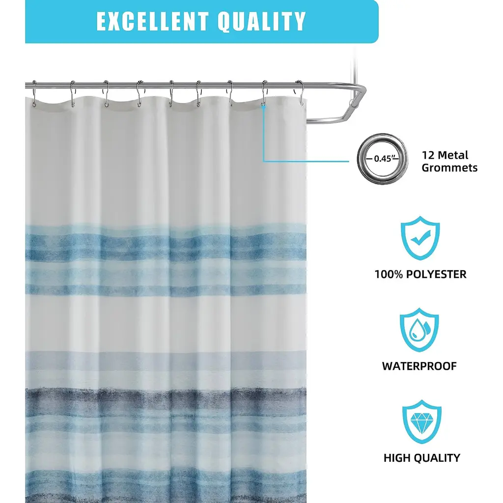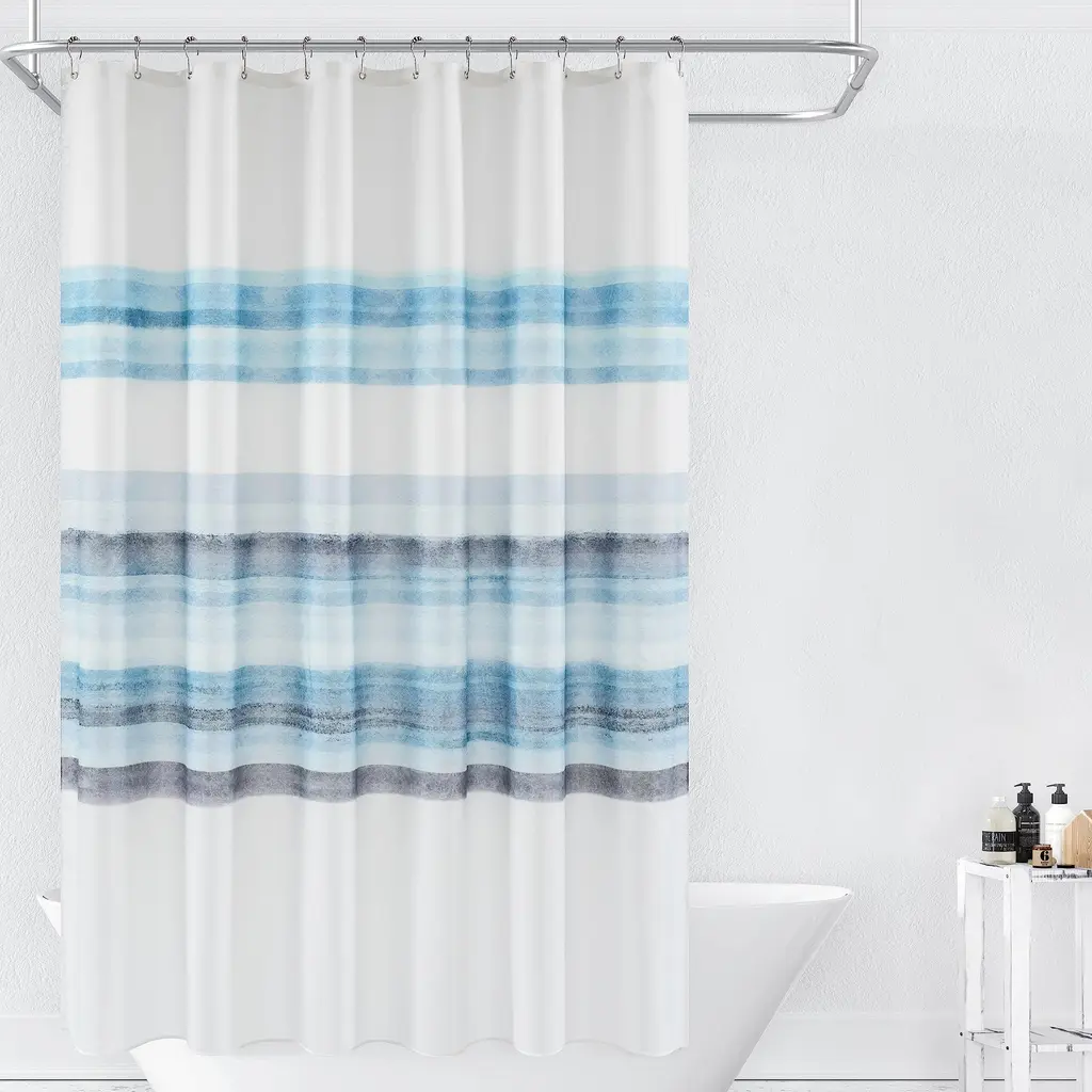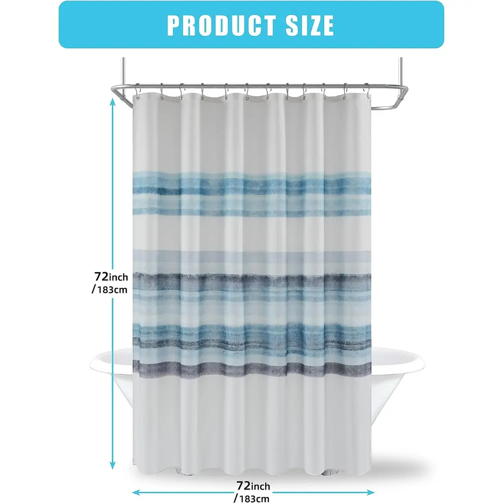 Blue Ombre Stripe Waterproof Shower Curtain For Bathroom, 72x72 Inch - Multicolor