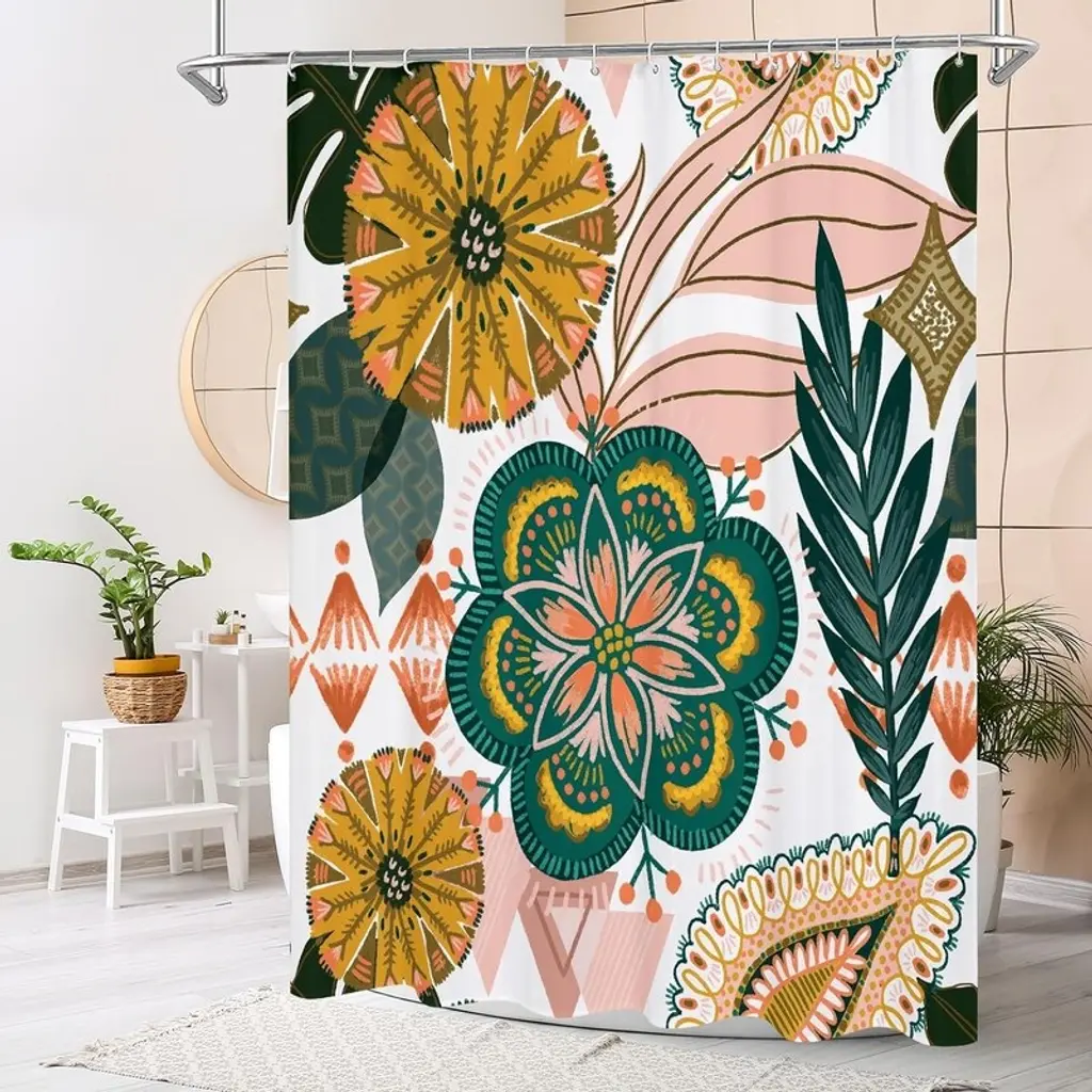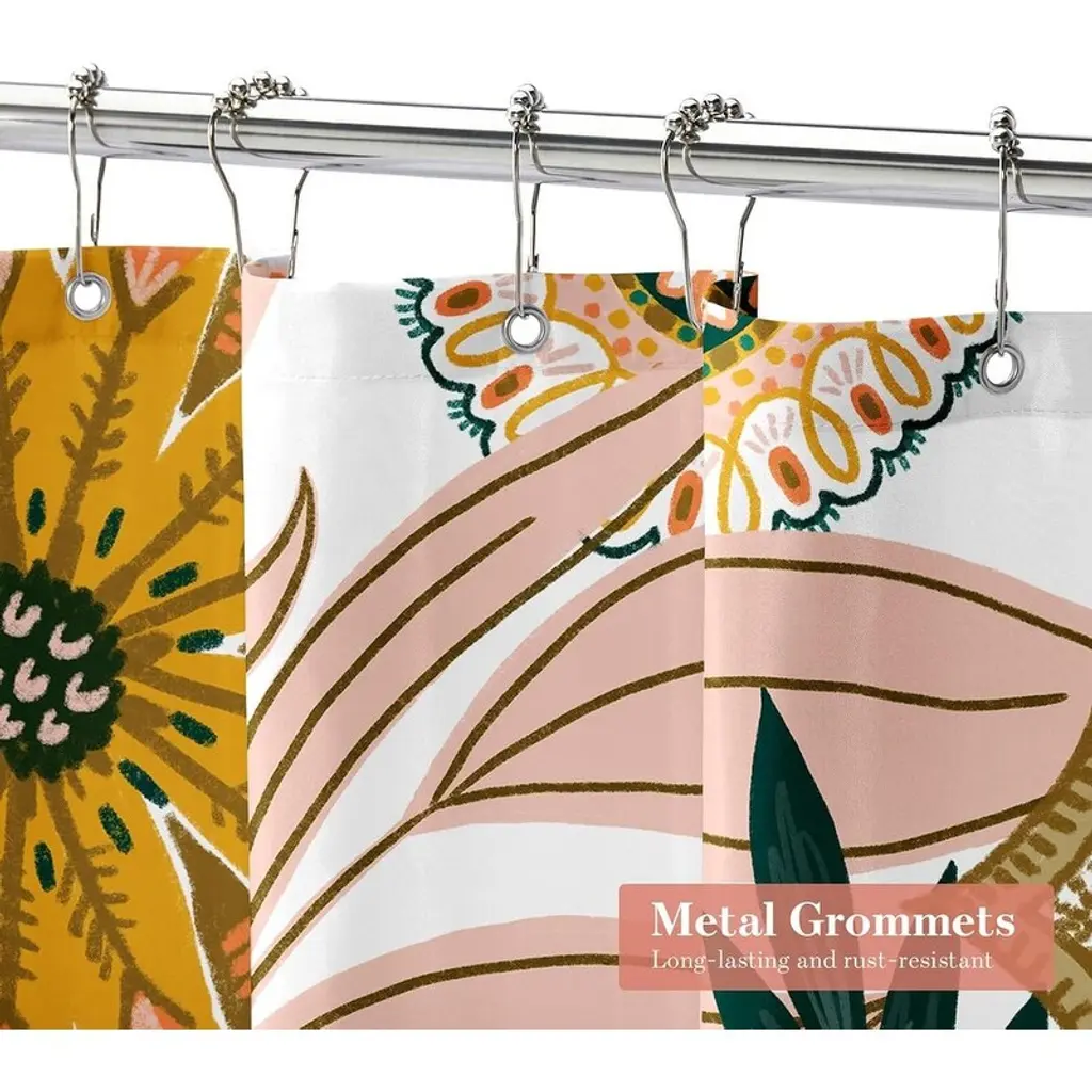 SPECIAL DESIGN - The chic shower curtain is decorated with bohemian floral botanicals that will blend in with any existing home décor. This design is a perfect accent piece, perfect for a beautiful and vintage bathroom style.LASTING WATERPROOF - This polyester fabric shower curtain is colorful and durable. The waterproof material allows water to bead up on the surface and dry quickly.EASY INSTALLATION - Metal grommets at the top allow the shower curtain to be quickly hung on a pole using shower rings. Plus, the included 12 C-hooks make installation a breeze.72 x 78 EASY TO INSTALL - With metal grommets on the top, our shower curtain can be hung on the pole quickly using shower rings. Plus, the 6 included C-shaped hooks make installation a breeze.36 x 72EASY CARE - Simply remove the curtain rings and wash in the washing machine. If there are wrinkles, gently iron on low heat.MULTIPLE OPTIONS - Our shower curtain is not only suitable for bathrooms, it is also perfect for use as a hotel, door, bathroom window, room divider, dorm room, closet or car curtain when traveling. It can even be used as a party backdrop!
