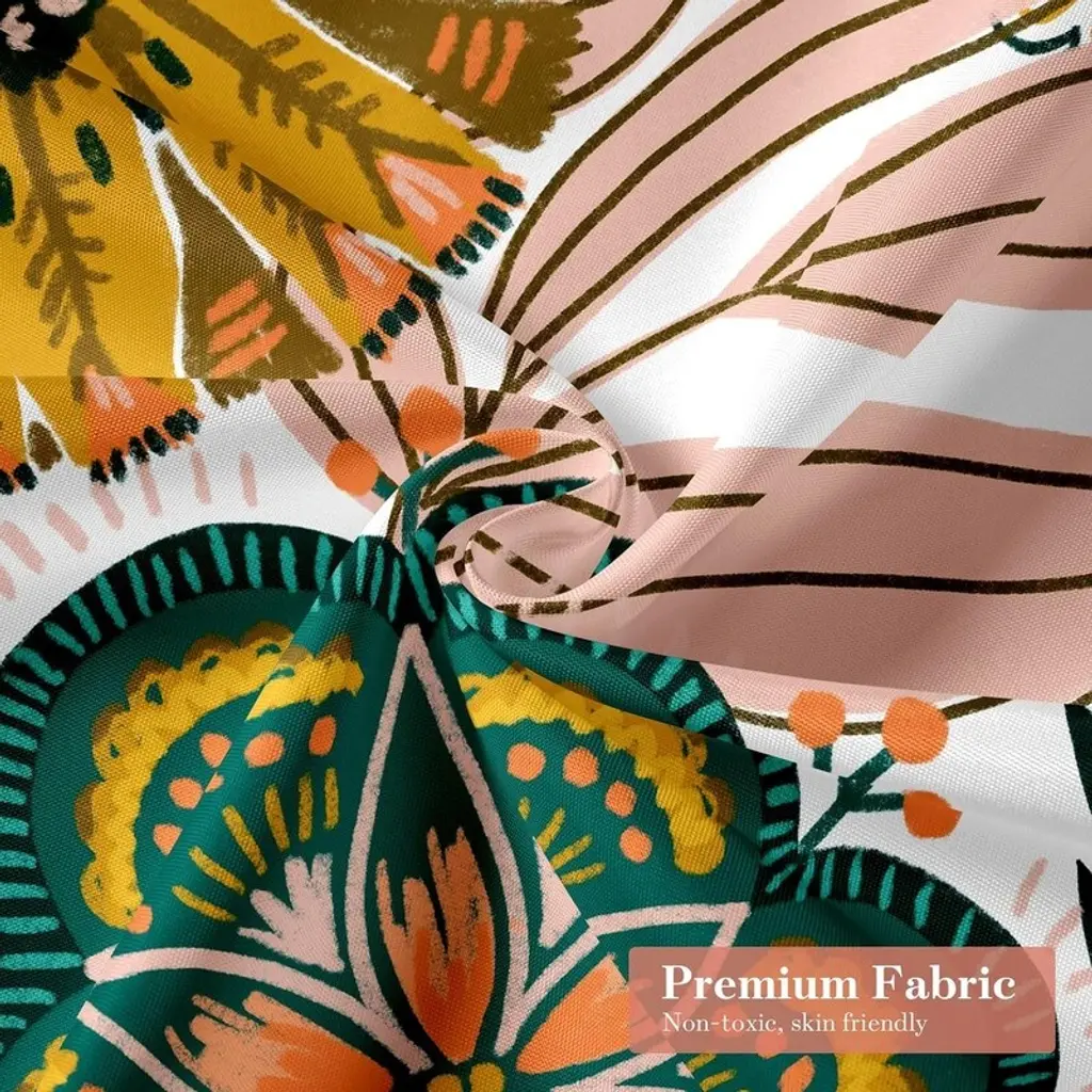 Bohemian Shower Curtain, Summer Botanical Leaves Fabric Shower Curtain, Modern Abstract Colorful Floral Shower Curtain. - 72"w X 78"l (Pack Of 1)/boho Shower