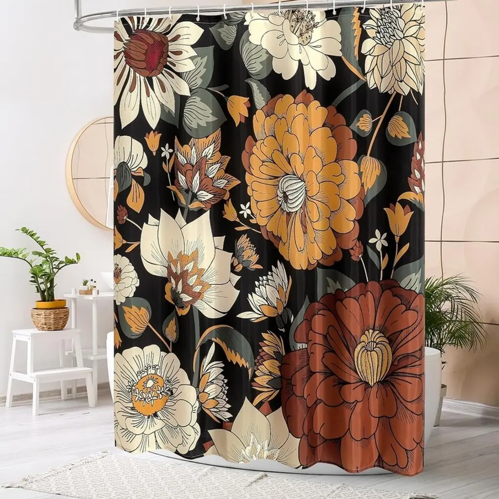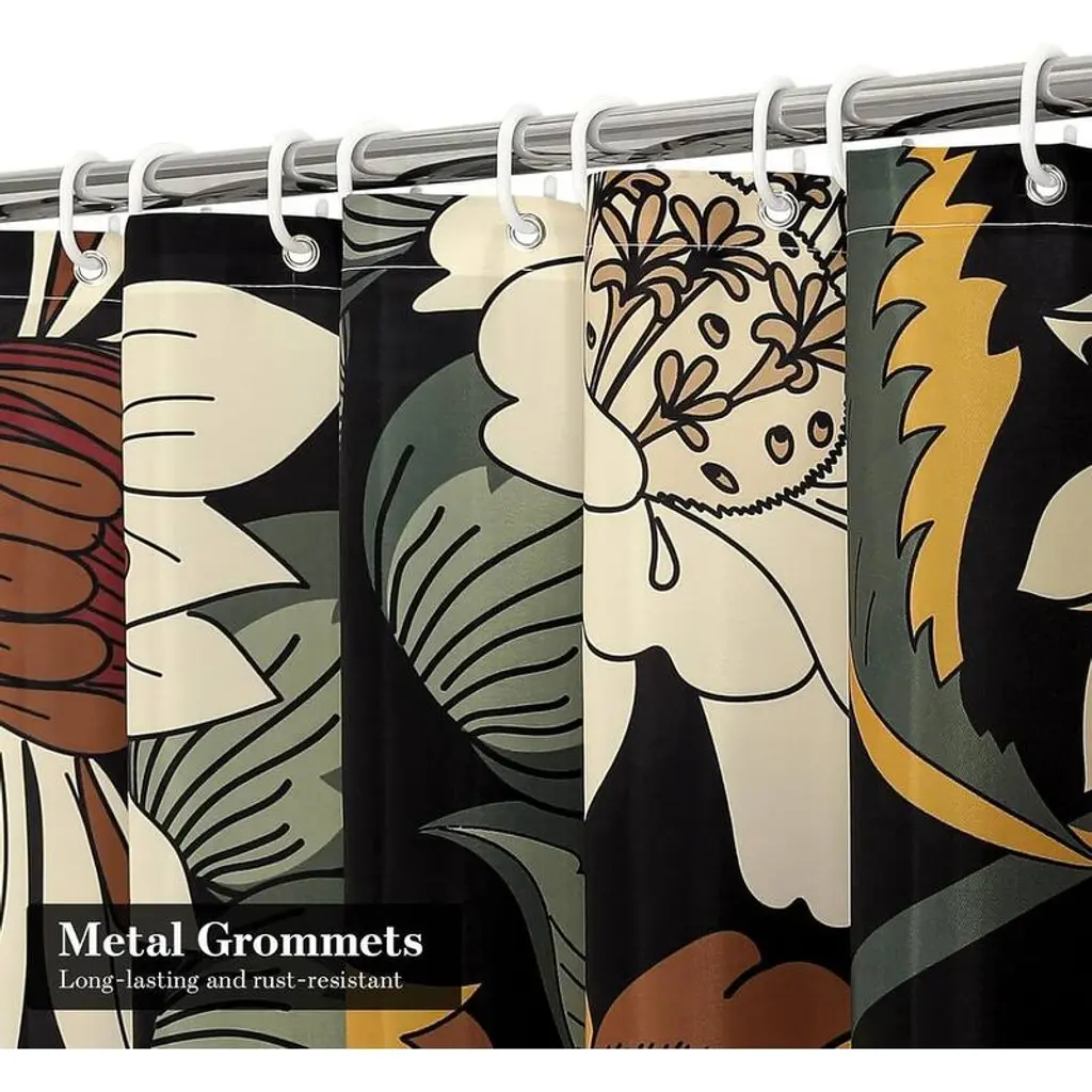SPECIAL DESIGN - The chic shower curtain is decorated with bohemian floral botanicals that will blend in with any existing home décor. This design is a perfect accent piece, perfect for a beautiful and vintage bathroom style.LASTING WATERPROOF - This polyester fabric shower curtain is colorful and durable. The waterproof material allows water to bead up on the surface and dry quickly.EASY INSTALLATION - Metal grommets at the top allow the shower curtain to be quickly hung on a pole using shower rings. Plus, the included 12 C-hooks make installation a breeze.EASY CARE - Simply remove the curtain rings and wash in the washing machine. If there are wrinkles, gently iron on low heat.MULTIPLE OPTIONS - Our shower curtain is not only suitable for bathrooms, it is also perfect for use as a hotel, door, bathroom window, room divider, dorm room, closet or car curtain when traveling. It can even be used as a party backdrop!