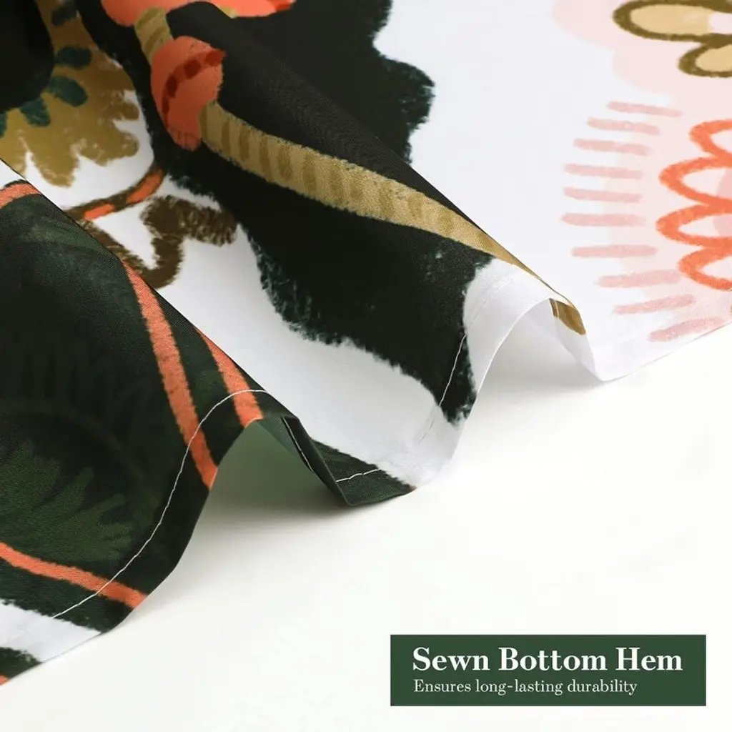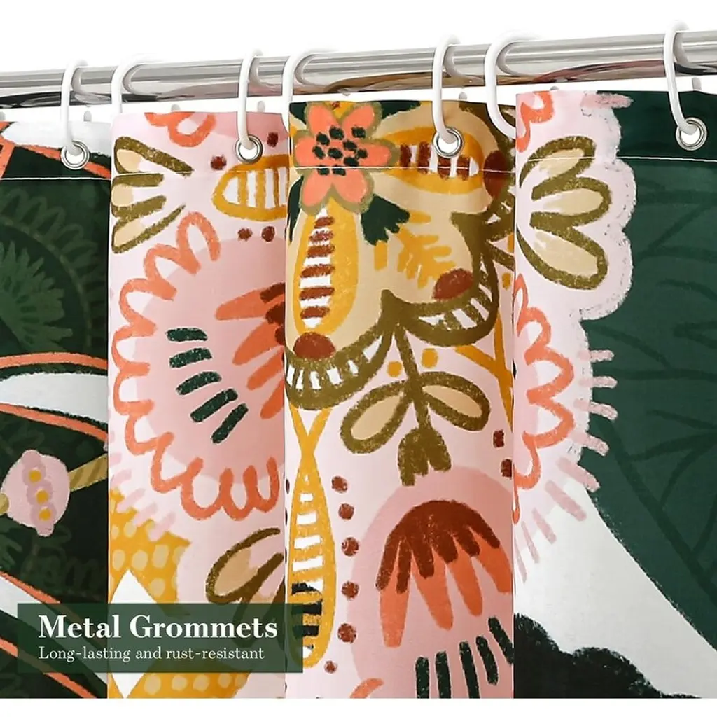 SPECIAL DESIGN - The chic shower curtain is decorated with bohemian floral botanicals that will blend in with any existing home décor. This design is a perfect accent piece, perfect for a beautiful and vintage bathroom style.LASTING WATERPROOF - This polyester fabric shower curtain is colorful and durable. The waterproof material allows water to bead up on the surface and dry quickly.EASY INSTALLATION - Metal grommets at the top allow the shower curtain to be quickly hung on a pole using shower rings. Plus, the included 12 C-hooks make installation a breeze.EASY CARE - Simply remove the curtain rings and wash in the washing machine. If there are wrinkles, gently iron on low heat.MULTIPLE OPTIONS - Our shower curtain is not only suitable for bathrooms, it is also perfect for use as a hotel, door, bathroom window, room divider, dorm room, closet or car curtain when traveling. It can even be used as a party backdrop!