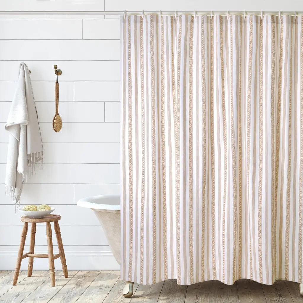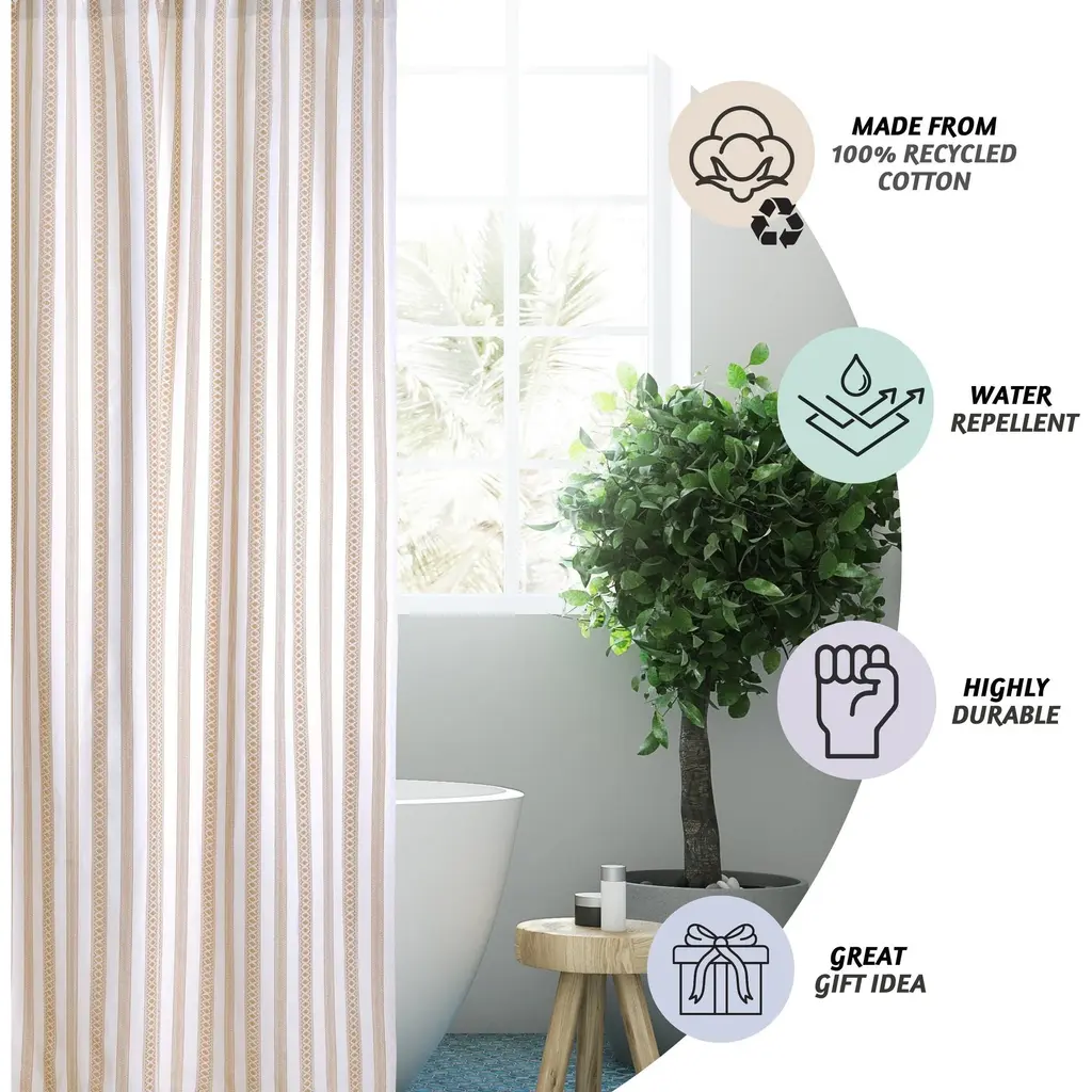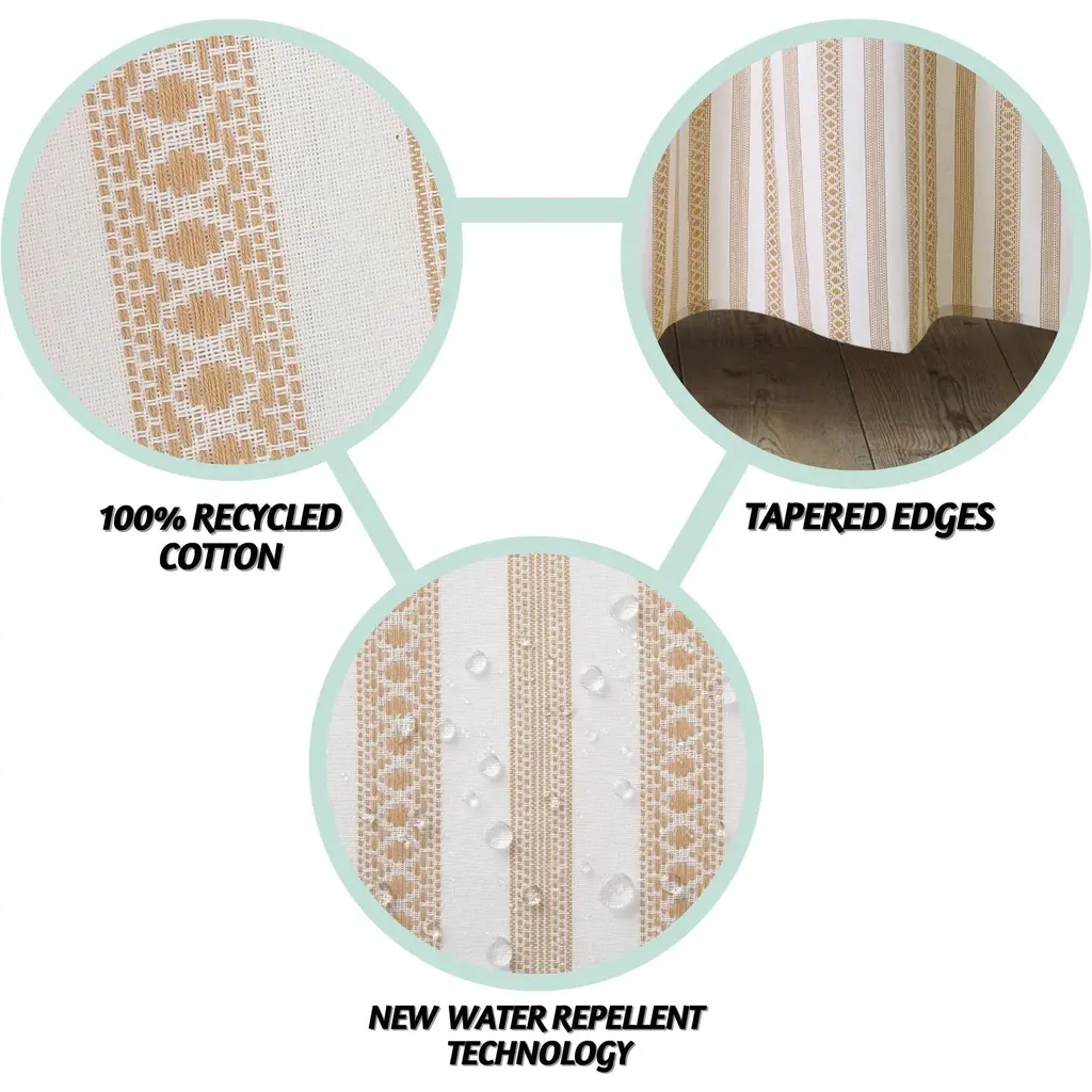 Boho Farmhouse Shower Curtains with Tassels, 72" X 72" (Aztec - Taupe)