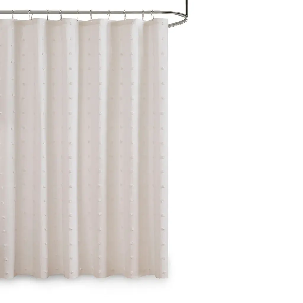 Brooklyn Cotton Jacquard Pom Pom Shower Curtain - Ivory