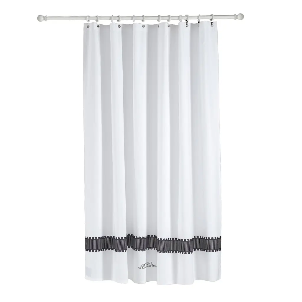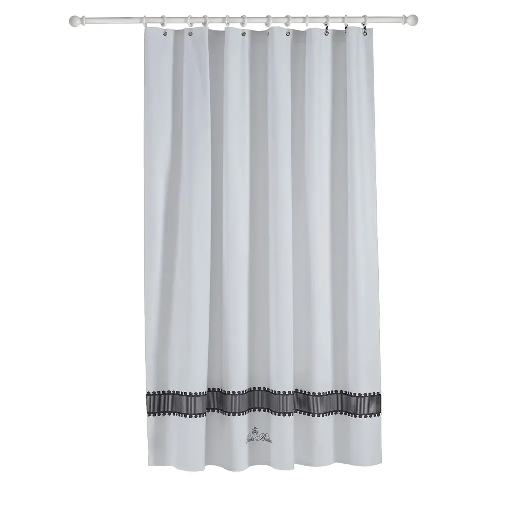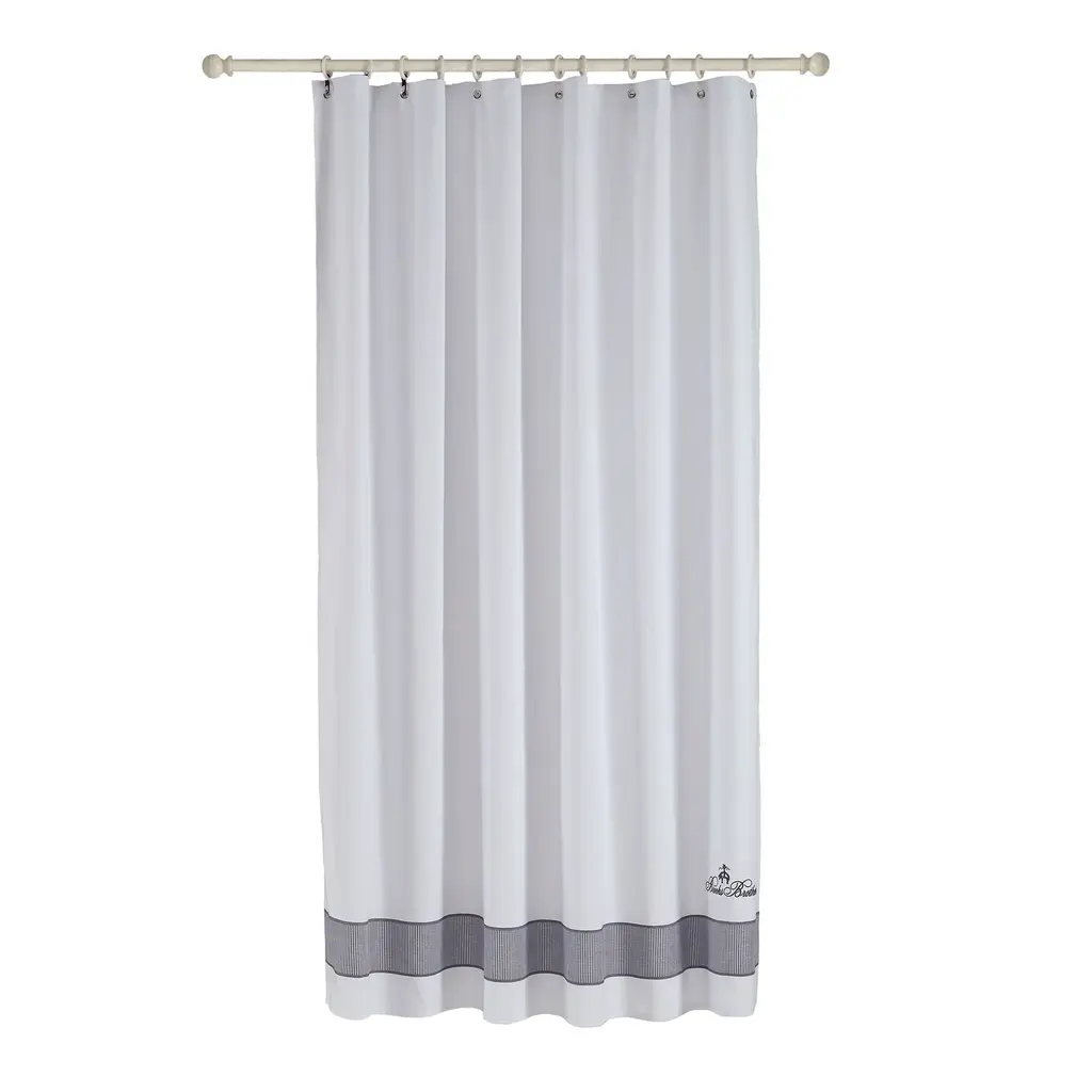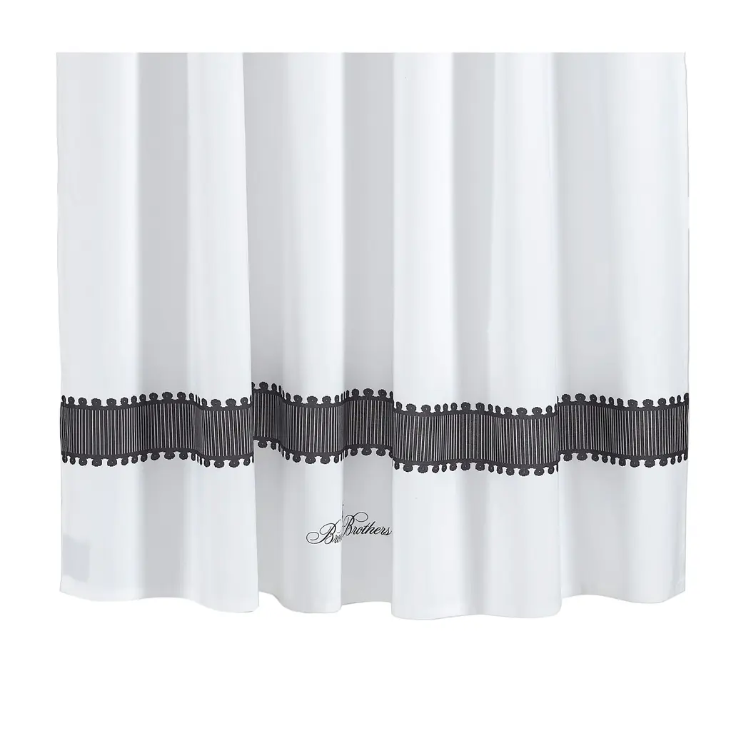 Brooks Brothers home collection Circle in Square shower curtains feature a subtle and geometric patterned design. The elegant jacquard shower curtains are made with long-staple Turkish cotton fibers, which give it a soft touch, more absorbency and increased volume. This jacquard shower curtain is ideal for adding a touch of elegance to your bathroom.Full towel range available to match including bath mat and shower curtainLong-staple Turkish cotton from the Aegean region makes the shower curtains more absorbent and durableIt gets softer and more divine after each washMaterial; Turkish Cotton Made in TurkeyShower Curtain: 72"L x 72"WMachine Washable