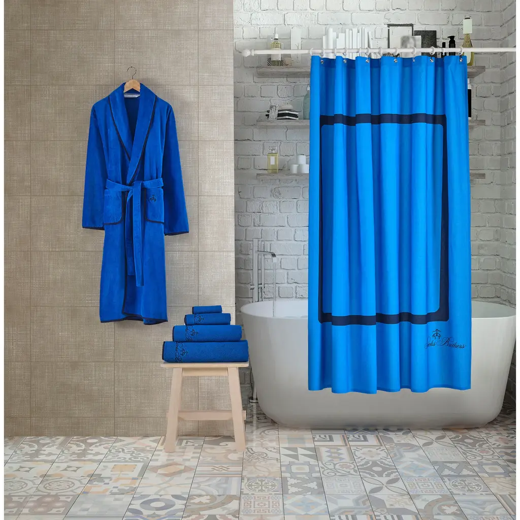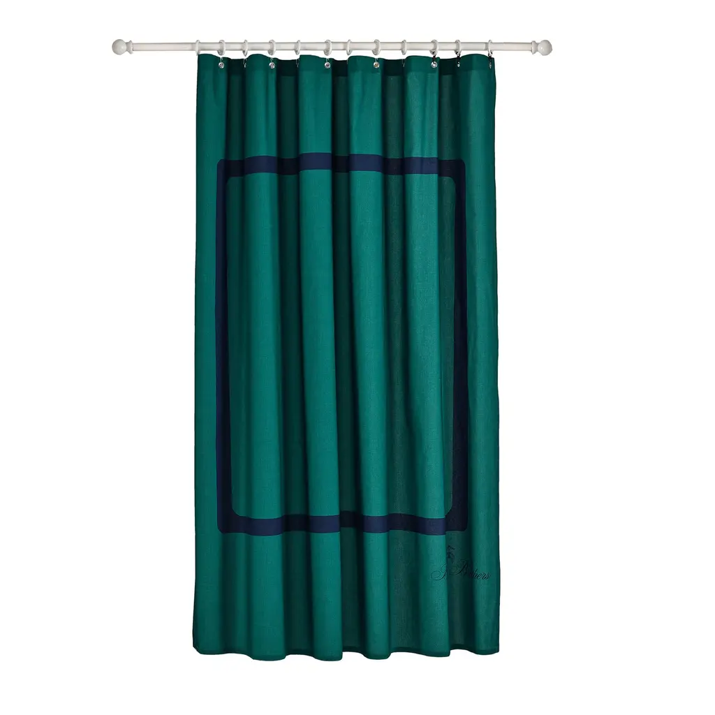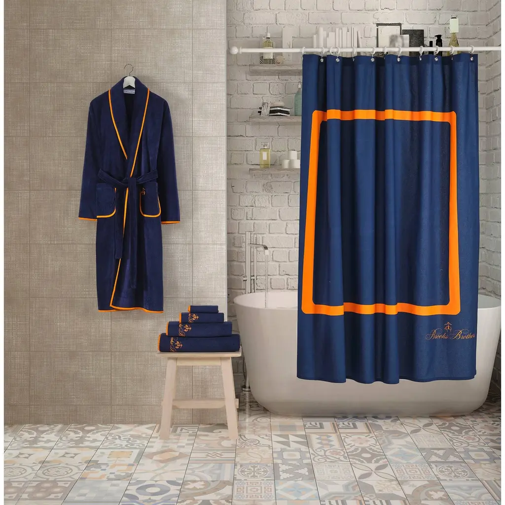 Brooks Brothers home collection Contrast Frame shower curtains have round edges and feature bright pattern in contrasting colors for unique and luxury look. Elegantly designed in a lavish size and weight for greater comfort, absorbency and usability. Each shower curtains are made from long-staple Turkish Cotton for maximum absorbency. The clean lines and a silky, smooth feel provide you an excellent comfort plus coziness for everyday use.Full towel range available to match including bath mats and shower curtainLong-staple Turkish cotton from the Aegean region makes the shower curtains more absorbent and durableIt gets softer and more divine after each wash Material; Turkish CottonMade in TurkeyShower Curtain: 72"L x 72"WMachine Washable