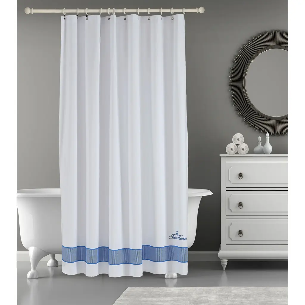 Brooks Brothers Fancy Border shower curtain Collection is made with untwisted yarn to create a super-soft feel. Our ultra-soft shower curtains guarantee everyday comfort and lasting freshness. Zero-Twist Turkish cotton is sought out for its sumptuous quality and plush, weighty feel.Full towel range available to match including bathrobe, bath mat and shower curtainZero-Twist Turkish cotton makes the shower curtains more absorbent, softer, and durableIt gets softer and more divine after each washMaterial; Turkish CottonMade in TurkeyShower Curtain: 72"L x 72"WMachine Washable