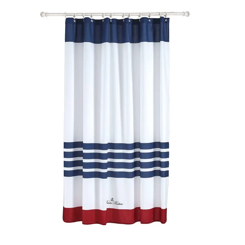 Brooks Brothers home collection Nautical Blanket Stripe shower curtains are uniquely designed to have elegant look and quality. Each shower curtain is made from long-staple Turkish Cotton for maximum absorbency. The clean lines and a silky, smooth feel provide you an excellent comfort plus coziness for everyday use. Wrap up in the luxurious Turkish shower curtains, loomed from premium long-staple Turkish cotton.Full towel range available to match including bath mats and shower curtainLong-staple Turkish cotton from the Aegean region makes the shower curtains more absorbent and durableIt gets softer and more divine after each washMaterial; Turkish CottonMade in TurkeyShower Curtain: 72"L x 72"WMachine Washable