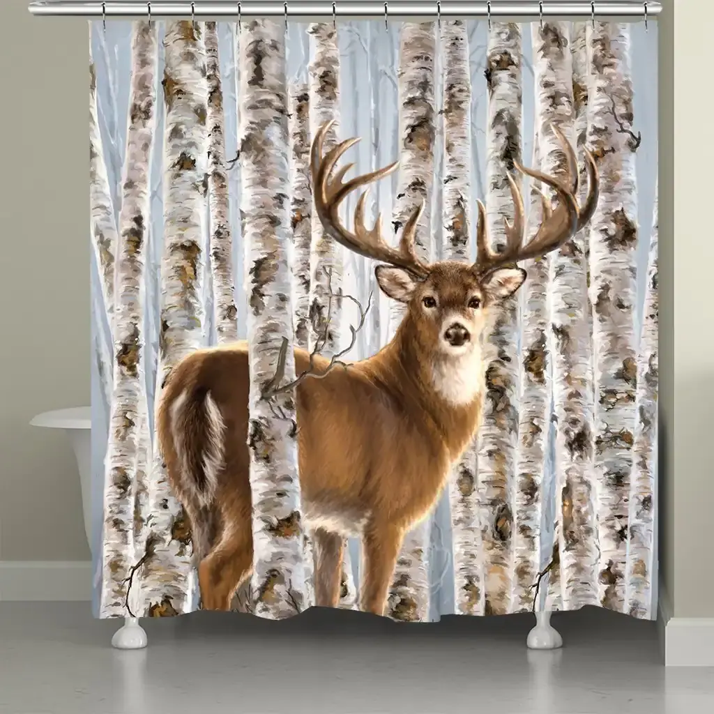 This lodge shower curtain, "Buck In Birches" is the perfect home accent for any bathroom. This beautiful, animal design captures a calm, life-like deer in detailed birches on a Winter day. Enhance your bathroom by adding this gorgeous, outdoor scene to your home. All of our products are digitally printed to create crisp, vibrant colors and images. Made to order in the USA on imported fabric. Please allow 5-7 days for items to ship.Artist: Dona GelsingerThis lodge shower curtain, "Buck In Birches" is the perfect home accent for any bathroom. This beautiful, animal design captures a calm, life-like deer in detailed birches on a Winter day. Enhance your bathroom by adding this gorgeous, outdoor scene to your home. All of our products are digitally printed to create crisp, vibrant colors and images. Made to order in the USA on imported fabric. Please allow 5-7 days for items to ship.Artist: Dona Gelsinger
