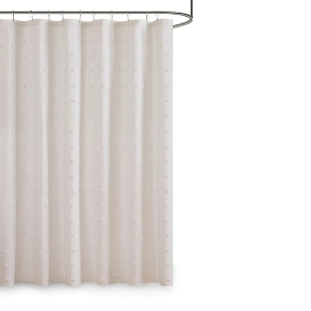 Create a shabby chic look in your bathroom with the Urban Habitat Brooklyn Cotton Yarn Dyed Jacquard Pom Pom Shower Curtain. This 100% cotton shower curtain features a soft pink hue with an all-over pom pom tuft design that creates a beautiful texture and fresh tonal pattern. Measuring 70x72 inches, the shabby chic shower curtain softens your bathroom d�cor and is machine washable for easy care. This shower curtain is also OEKO-TEX certified, meaning it does not contain any harmful substances or chemicals, ensuring quality comfort and wellness. Coordinate with bedding collections, window treatments, and decorative pillows that are sold separately to complete your d�cor.