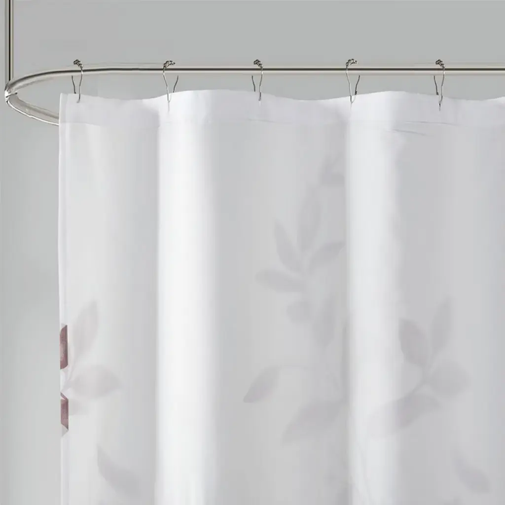 Transform your bathroom with the beauty of Madison Park’s Cecily Printed Shower Curtain. The gorgeous shower curtain flaunts a stunning allover grey botanical design with burnout detailing for beautiful contrast and dimension. Non-absorbent water coat will help to bead water on fabric and glide down which provides quick dry and keeps fabric looking tidy, separate liner is still recommended and can be purchased seperately. Machine washable for easy care; Each shower curtain measure 72"x72" and is finished with 12 button holes at the top making it easy to hang; hooks and rod are not included and will need to be purchased separately. Complete the look with coordinating Window panel, available and sold separately.