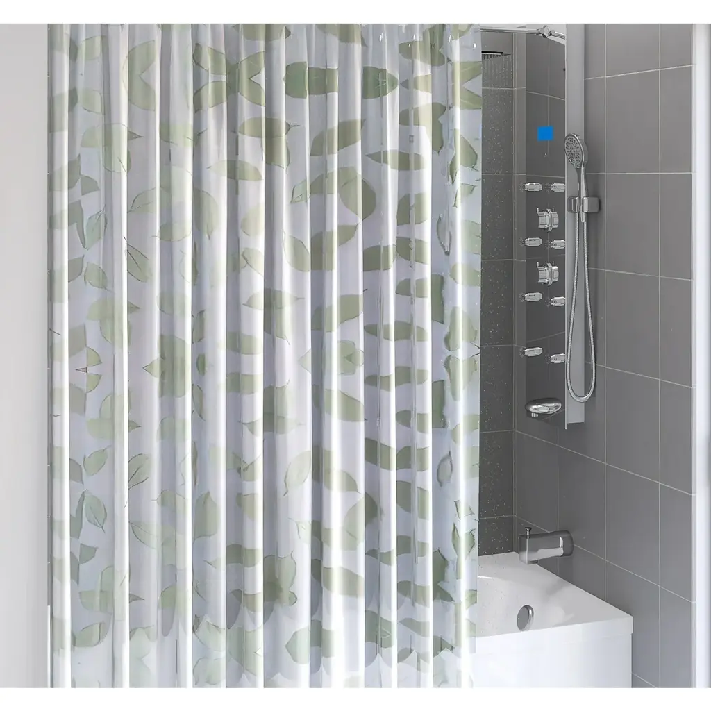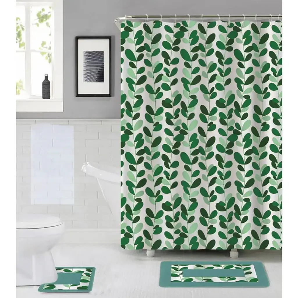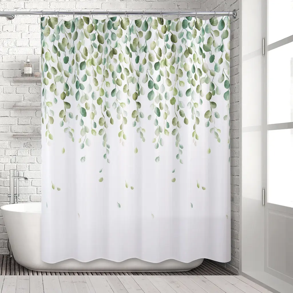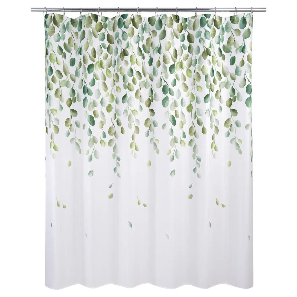Elevate your bathroom decor with the Cascade Shower Curtain by Allure Home Creation. Adorned with lush cascading leafy vines in shades of green on a crisp white background, this elegant botanical design brings natural beauty into your bathroom. Printed on 100% easy care textured slub-weave polyester fabric, this flowing design measures 70" x 72" and fits most standard sized tubs and shower areas. The reinforced buttonhole top works with standard shower hooks and curtain rods, while also preventing water from splashing outside of your tub or shower stall. Machine washable and tumble dryable on low heat, use of a liner is recommended.Features: