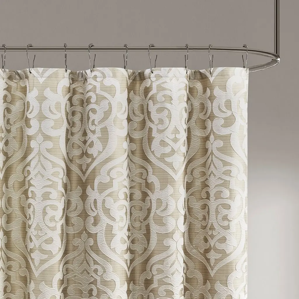 Cavinas 72 X 72 Inch Luxury Textured Jacquard Shower Curtain With Damask Medallion Design,bathroom Shower Curtains Machine Washable,tan+ivory