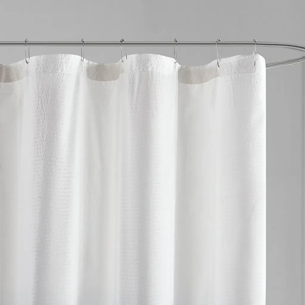 Elevate your bathroom with this contemporary shower curtain featuring an elegant embossed seersucker texture and subtle ombre gradient print, creating dimensional visual interest and modern sophistication. Expertly crafted from premium, wrinkle-resistant polyester, it maintains its structural integrity and vibrant colors through years of use while offering effortless cleaning.