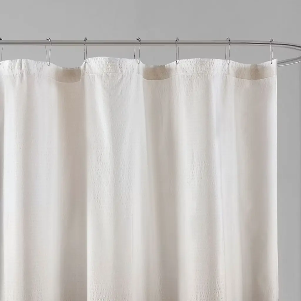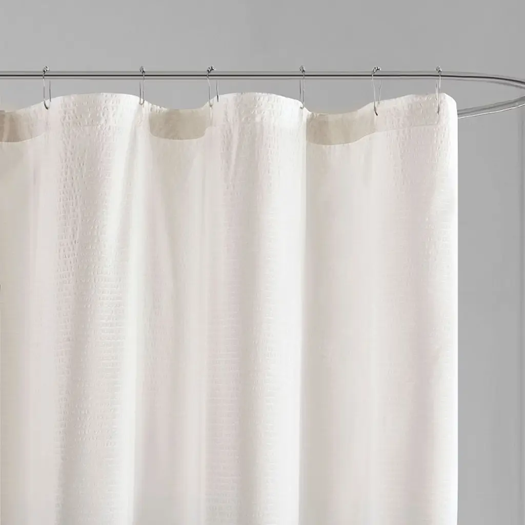 The shower curtain features an embossed seersucker fabric with a gradient print for a rich, modern look. Made from high-quality polyester, this shower curtain is built to last. This shower curtain is machine washable, making cleaning simple and efficient.