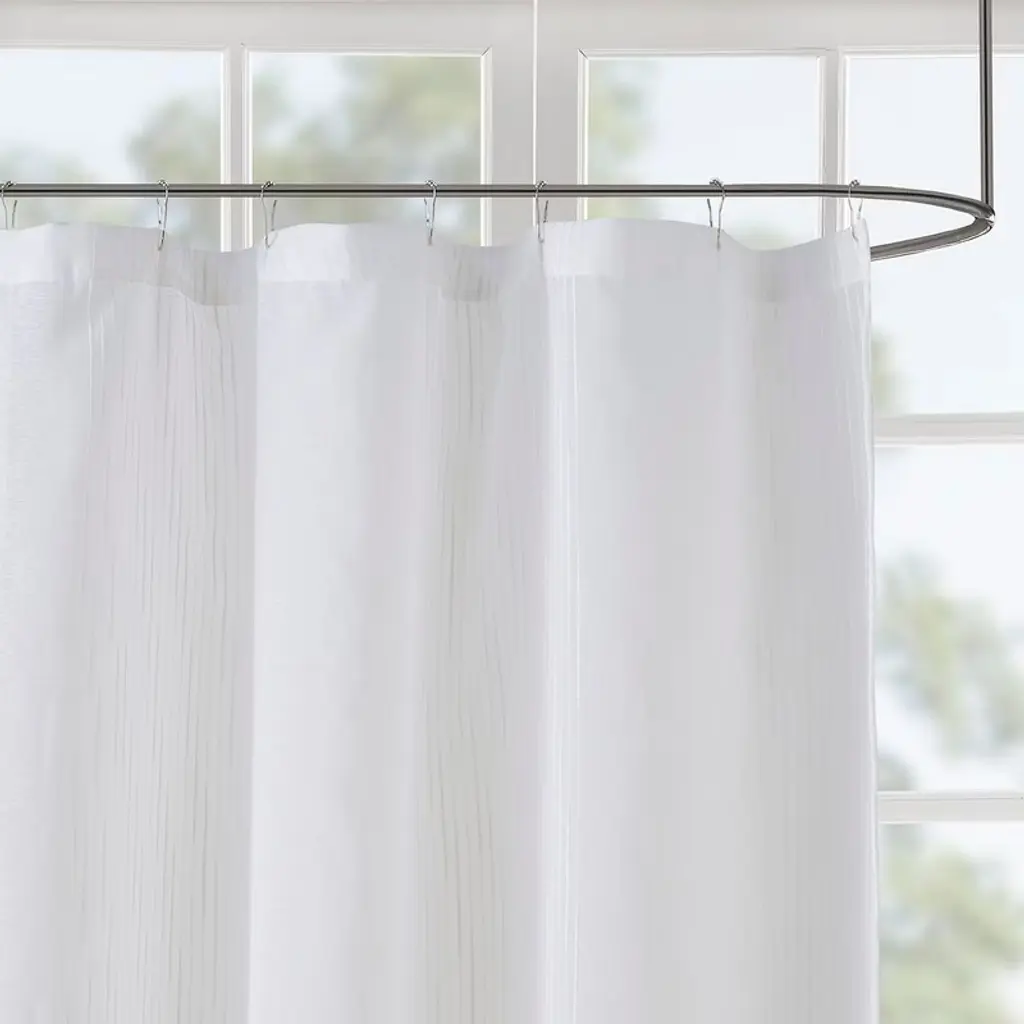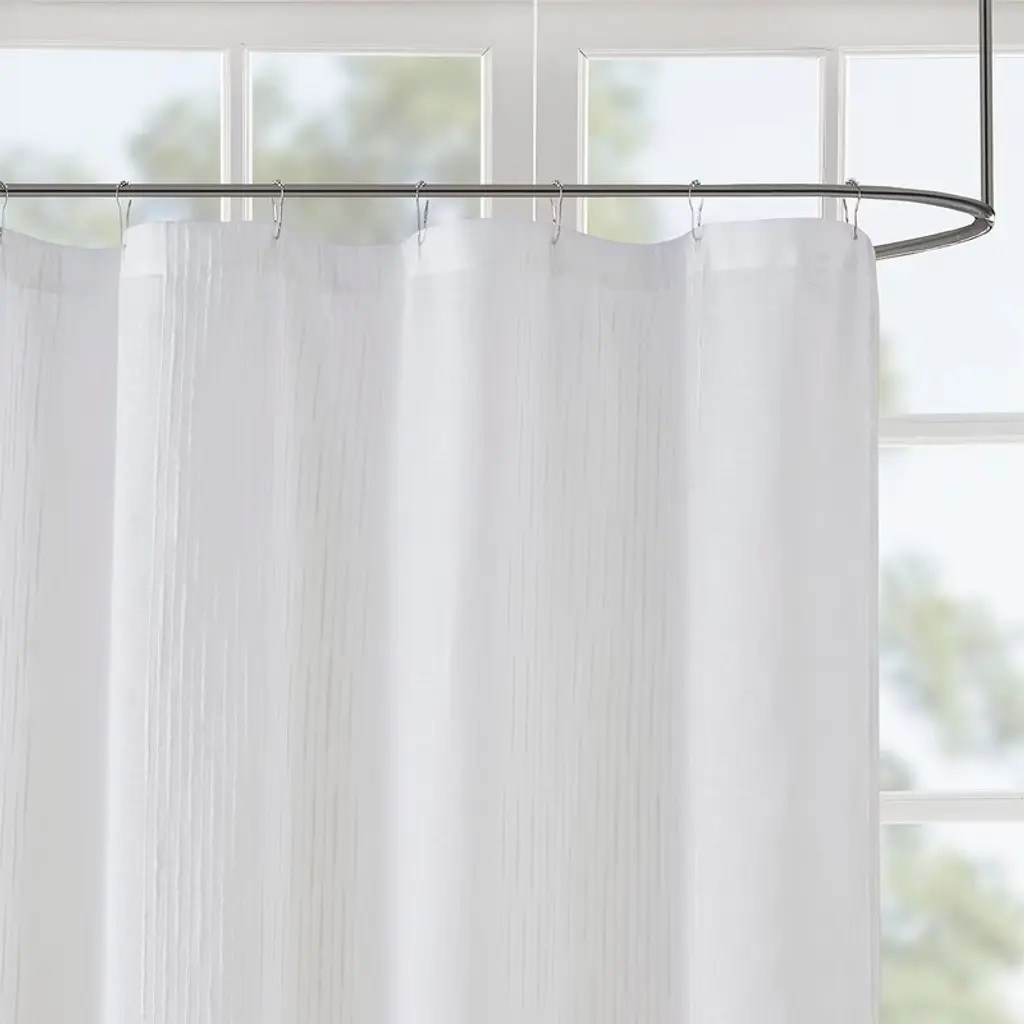 Cavinas 72 X 72 Inch Stripe Sheer Fabric Shower Curtain,bathroom Shower Curtains With 12 Button Holes,machine Washable,white