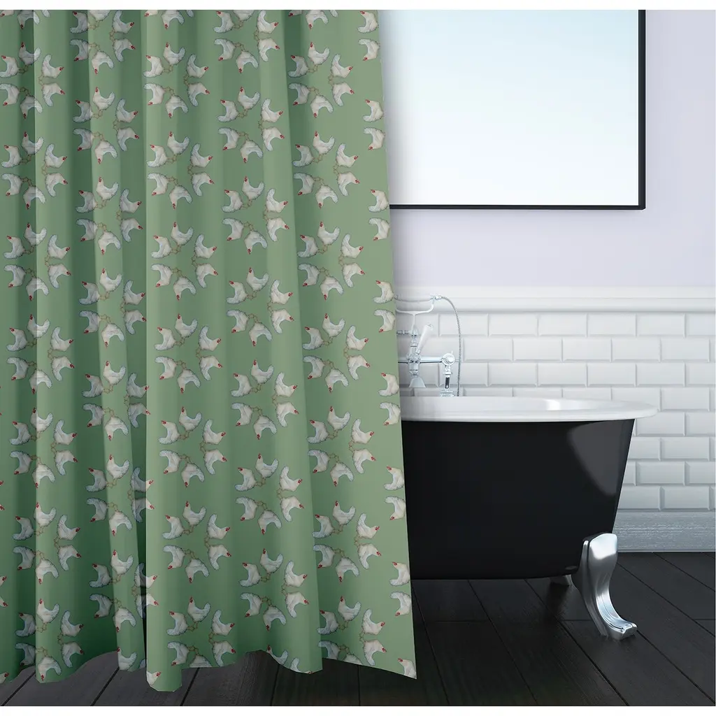 Chickens-Go-Round Shower Curtain - Laurel Tree Green