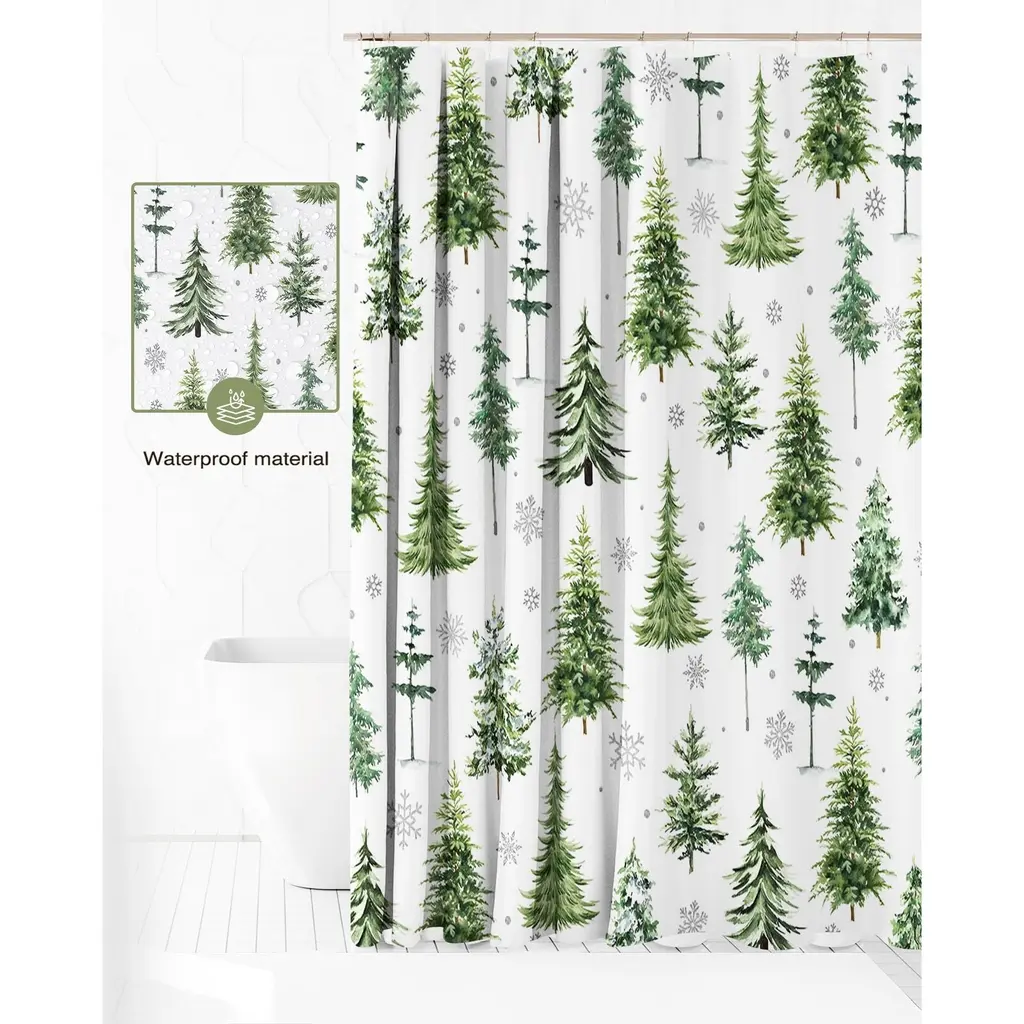 Christmas Pine Tree Shower Curtain, 72" X 72",greenery Farmhouse Decor - Multicolor