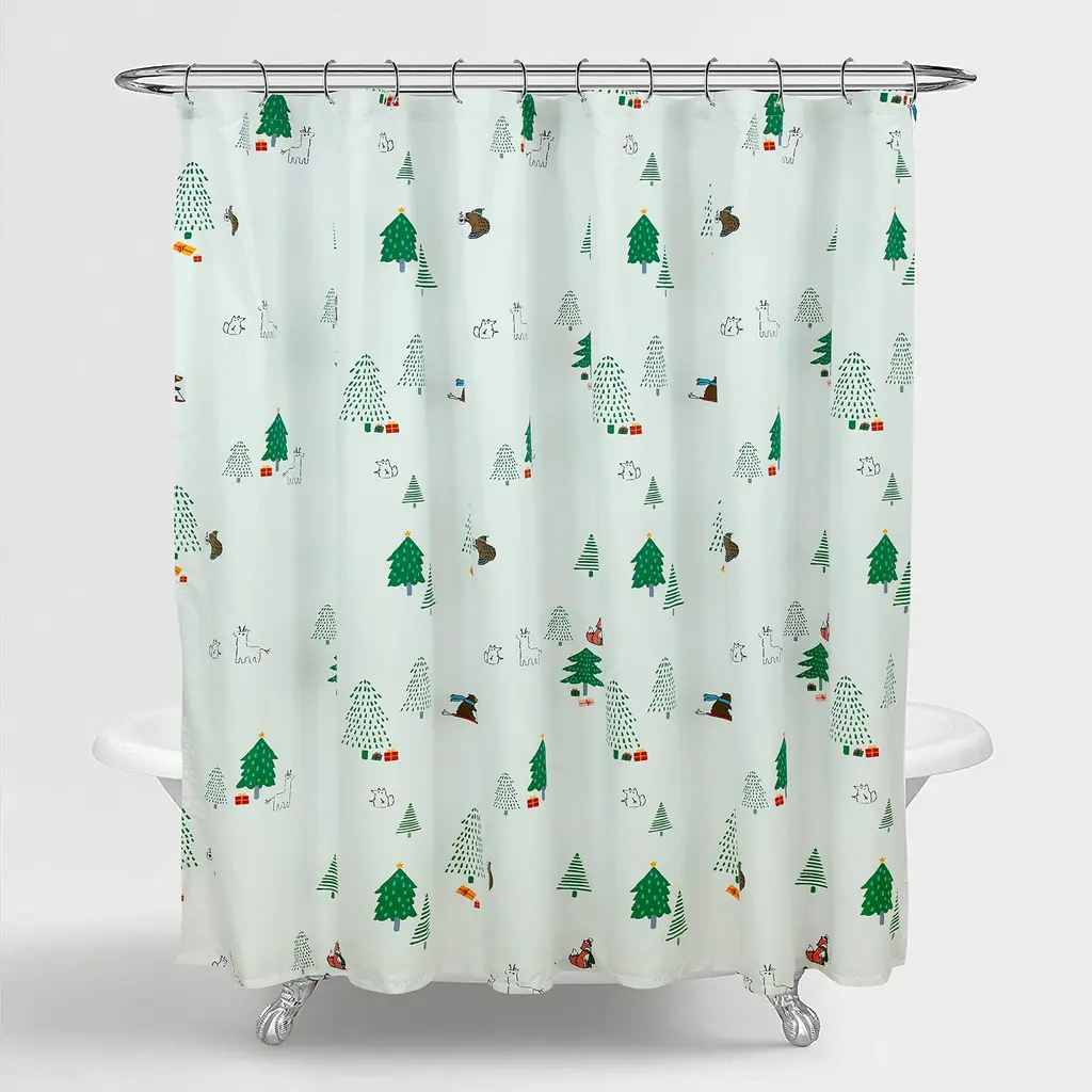 Bring festive fun to your bathroom with our Christmas Printed Shower Curtain featuring an adorable holiday critter design. Measuring 72" x 72", this cheerful curtain showcases a variety of whimsical animals dressed up for the season, adding a playful touch to your holiday decor. Made from high-quality, water-resistant fabric, it ensures durability and easy maintenance for everyday use. The vibrant colors and charming imagery create a joyful atmosphere, making bath time a delightful experience during the holiday season. Celebrate Christmas in style with this enchanting shower curtain that adds a whimsical flair to your home!