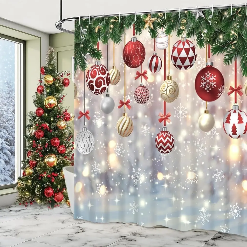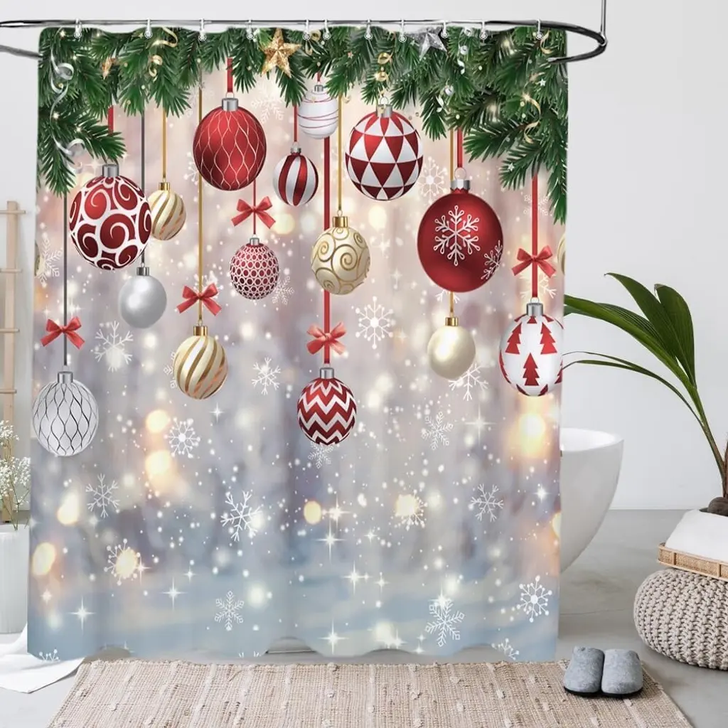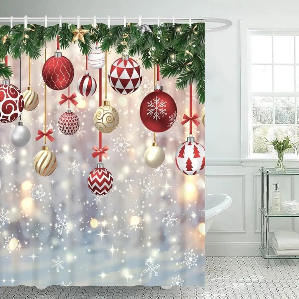 Brighten up your bathroom this holiday season with this Christmas Shower Curtain, measuring 72" x 72". Adorned with colorful ornaments and a charming pine tree design, this curtain brings a festive and cheerful atmosphere to your decor. Made from durable, water-resistant fabric, it not only enhances your space with vibrant holiday colors but also keeps your bathroom floor dry. Easy to install and maintain, this shower curtain is perfect for adding a joyful touch to your Christmas celebrations, making every shower a delightful experience filled with holiday spirit!