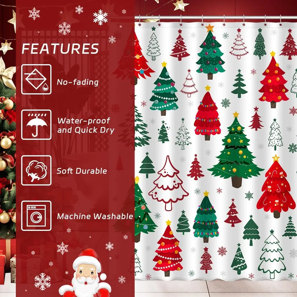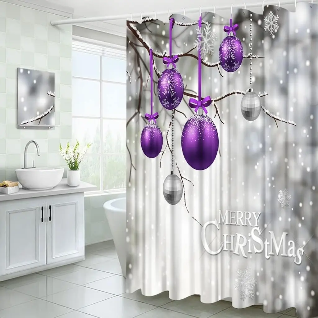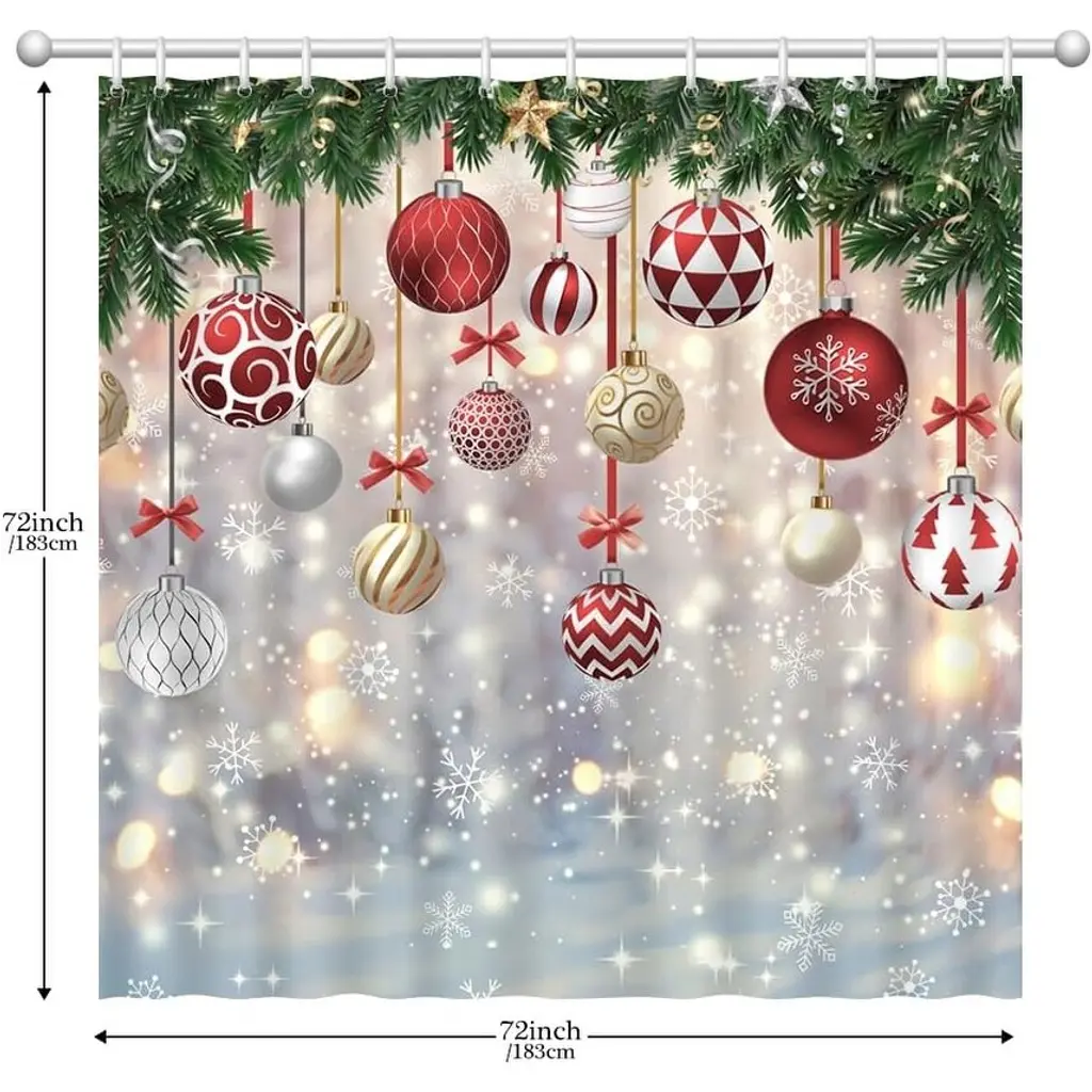 Brighten up your bathroom this holiday season with this Christmas Shower Curtain, measuring 72" x 72". Adorned with colorful ornaments and a charming pine tree design, this curtain brings a festive and cheerful atmosphere to your decor. Made from durable, water-resistant fabric, it not only enhances your space with vibrant holiday colors but also keeps your bathroom floor dry. Easy to install and maintain, this shower curtain is perfect for adding a joyful touch to your Christmas celebrations, making every shower a delightful experience filled with holiday spirit!