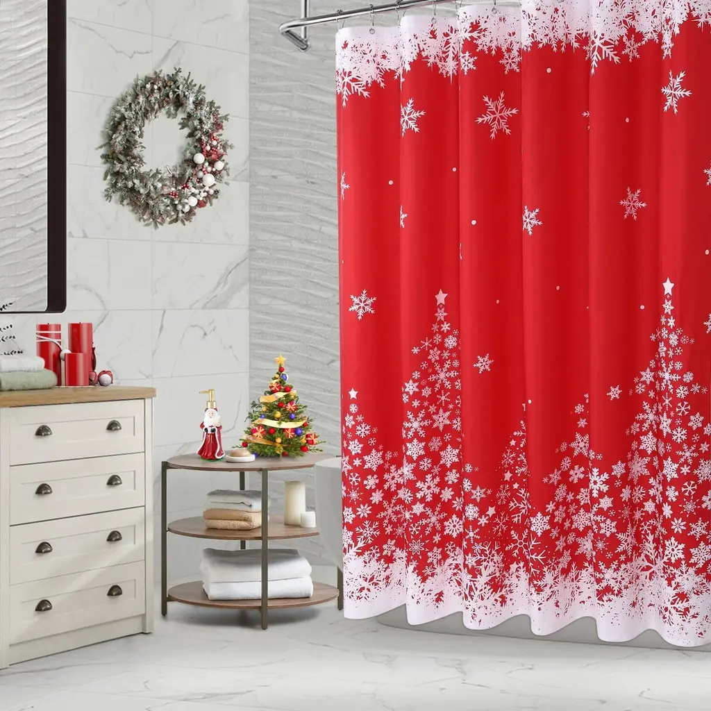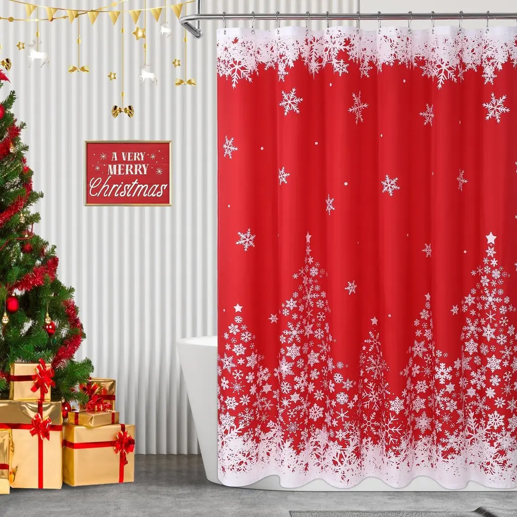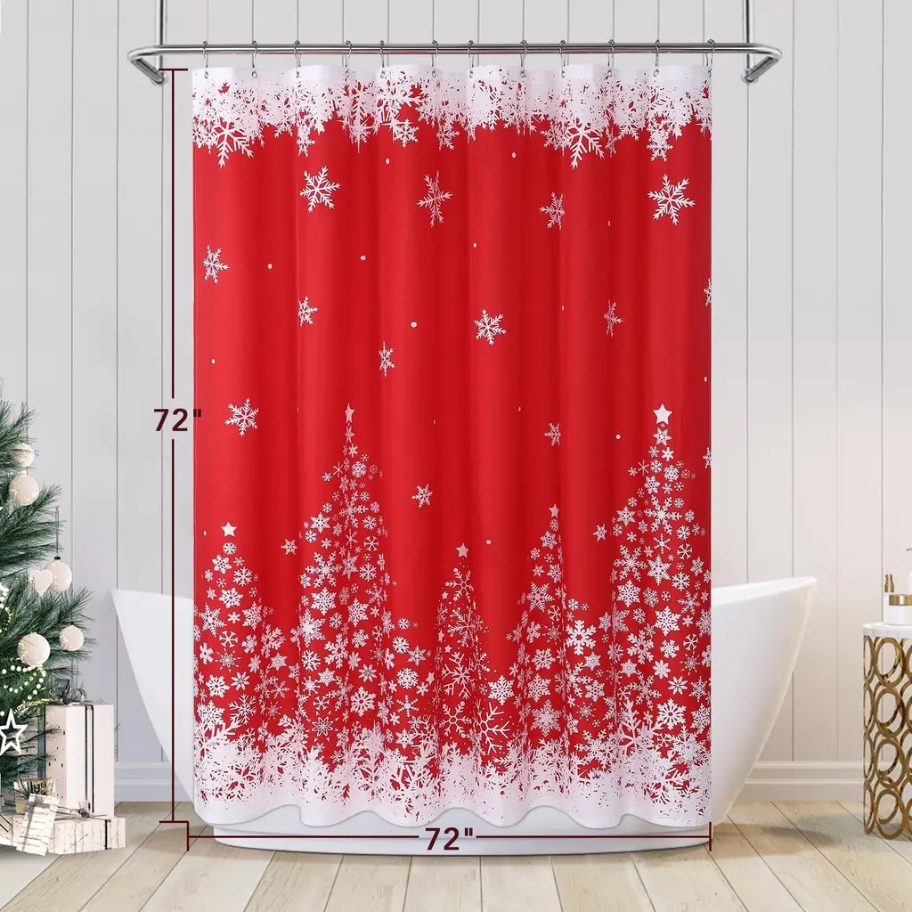 Brighten up your bathroom this holiday season with the Christmas Shower Curtain, measuring 72" x 72" and featuring a classic red and white tree design. Crafted from premium, water-resistant fabric, this festive curtain brings a cheerful holiday look while protecting your bathroom floor from splashes. The vibrant colors and detailed tree pattern add a cozy, seasonal charm that's easy to install and maintain. Perfect for celebrating the warmth of the season, this curtain is a must-have for holiday home decor.