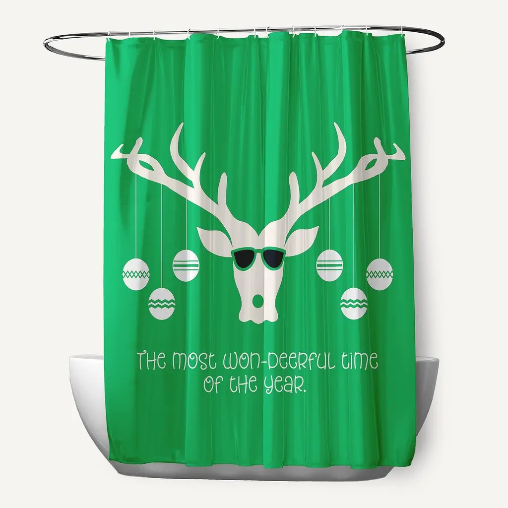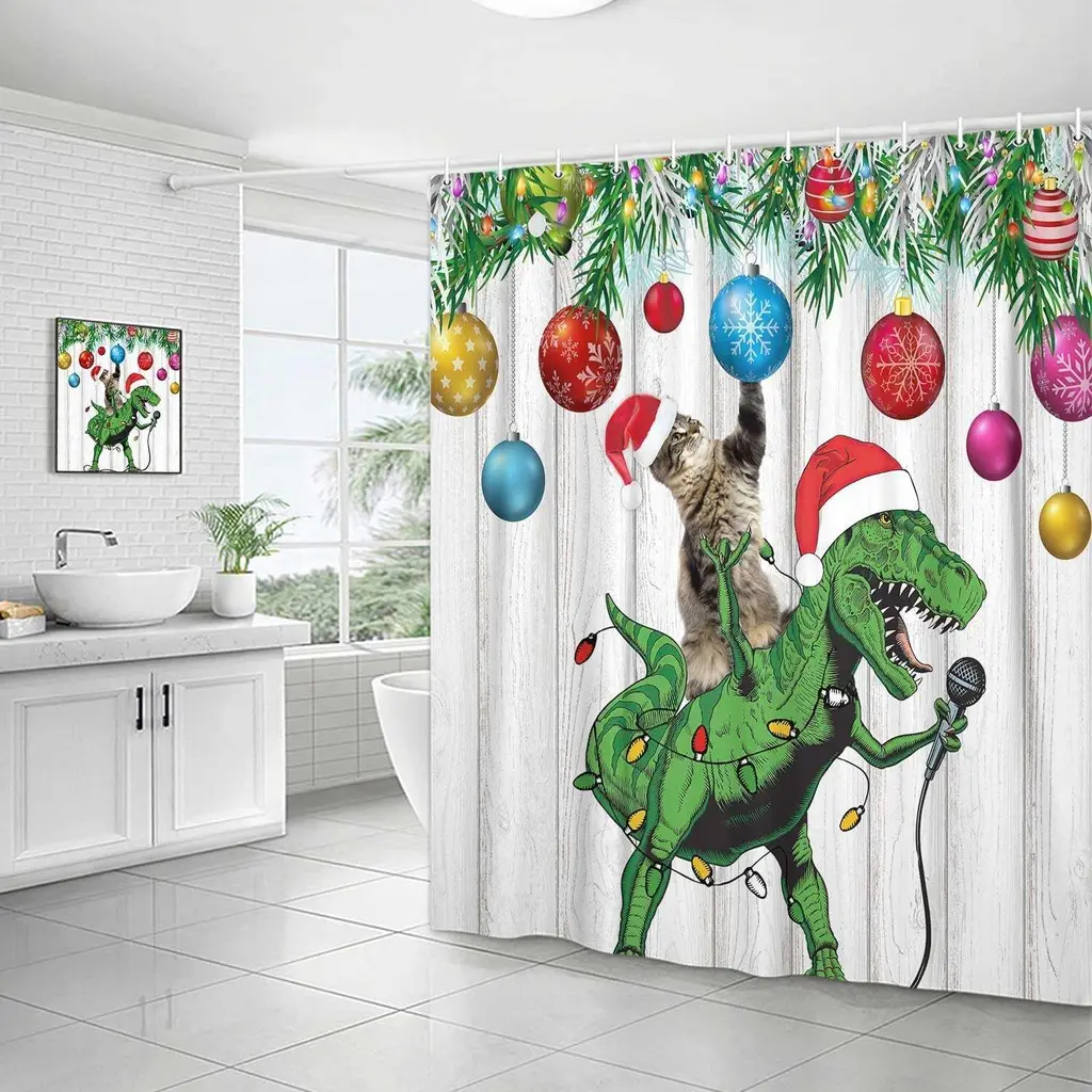 Make bath time fun with this playful Christmas Shower Curtain, measuring 72" x 72". Featuring an adorable dinosaur wearing a Santa hat, this curtain adds a whimsical touch to your child's bathroom decor. Crafted from high-quality, water-resistant fabric, it ensures durability while keeping your space dry. The vibrant colors and festive design create a joyful atmosphere, perfect for celebrating the holiday season with kids. Easy to install and maintain, this shower curtain is a delightful addition that will spark your child's imagination and holiday spirit!
