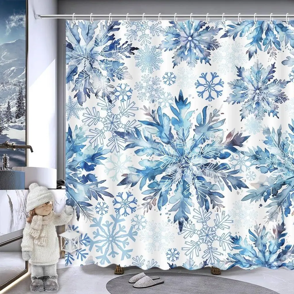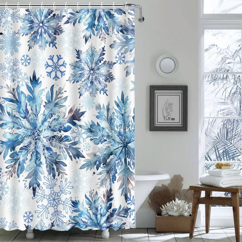Christmas Snowflake Shower Curtain - Winter Decor, 72x72 Inches - Multicolor