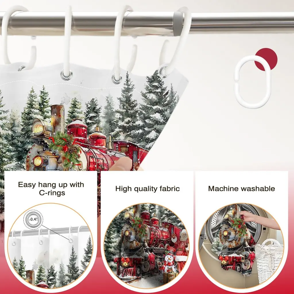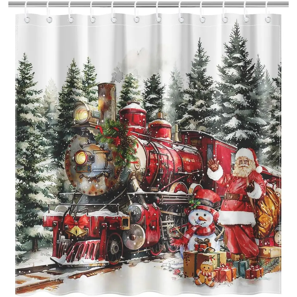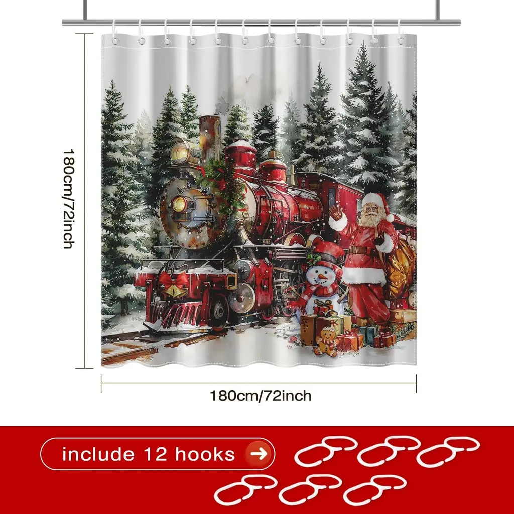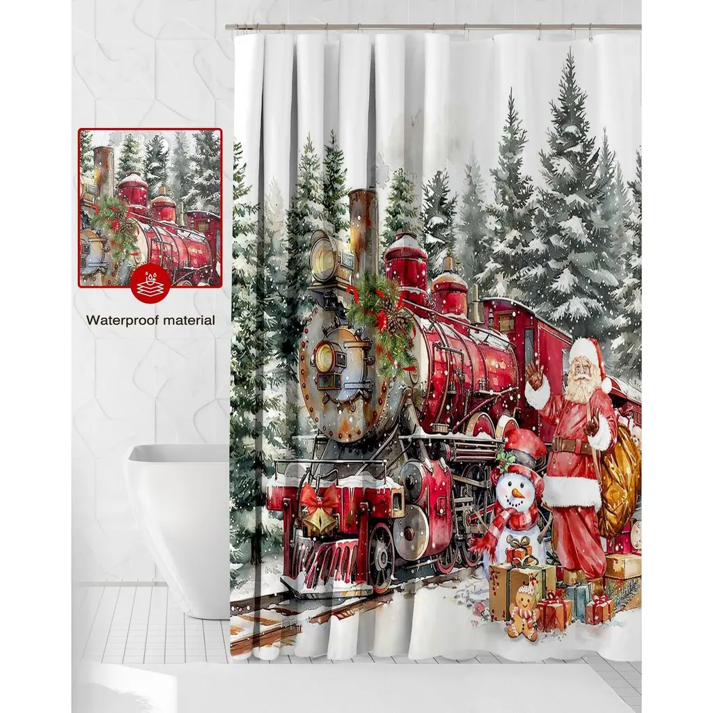 Transform your bathroom into a festive wonderland with this Christmas Train Shower Curtain, measuring 72" x 72". Featuring a charming red train traveling through a snowy forest, this curtain captures the magic of the holiday season. Crafted from durable, water-resistant fabric, it combines functionality with delightful holiday decor, keeping your bathroom dry while adding a whimsical touch. Easy to install and maintain, this shower curtain is perfect for creating a cozy, cheerful atmosphere, making every shower feel like a joyful journey through a winter landscape!