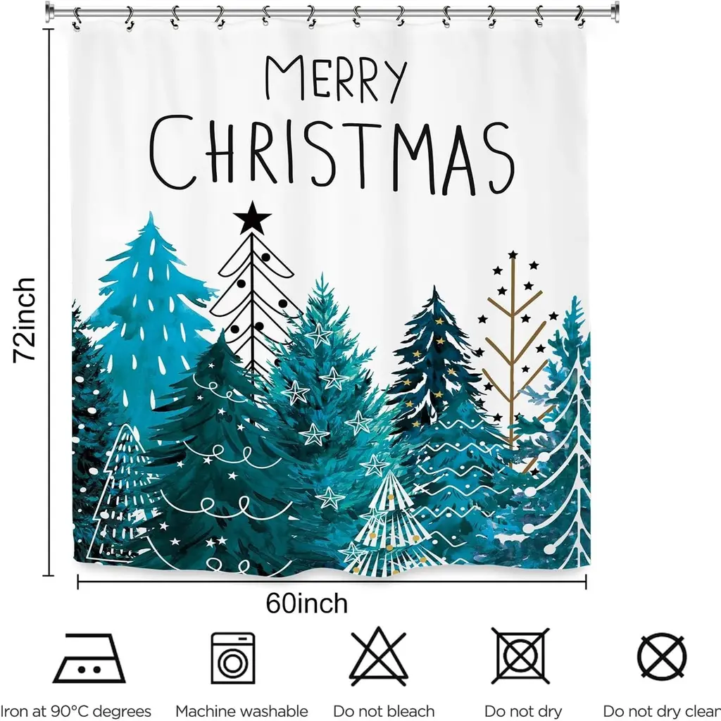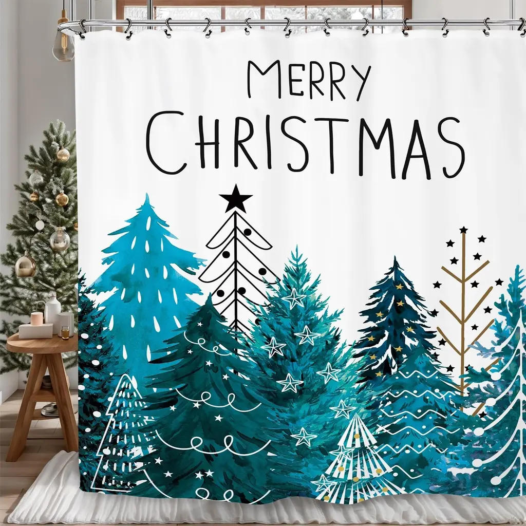 Christmas Tree Forest Shower Curtain - Teal Green Decor, 60x72 Inches - Multicolor
