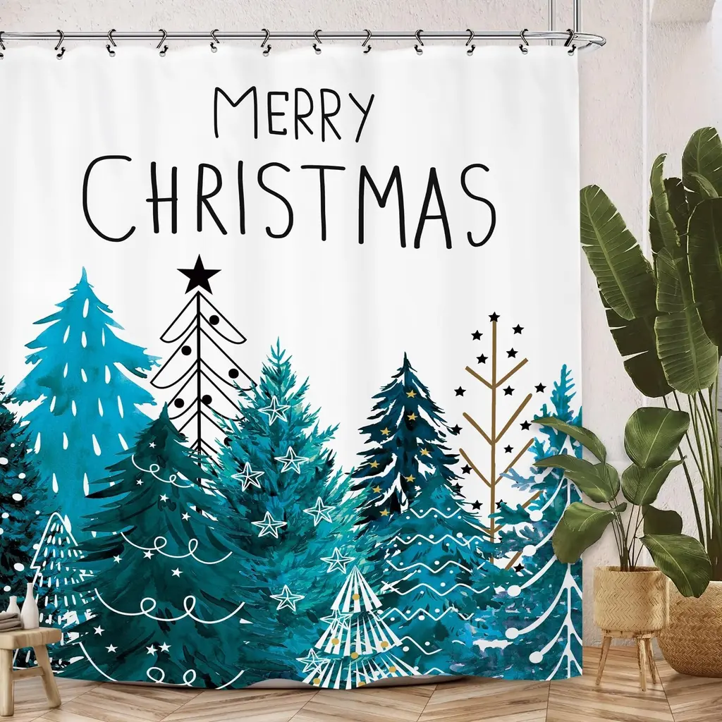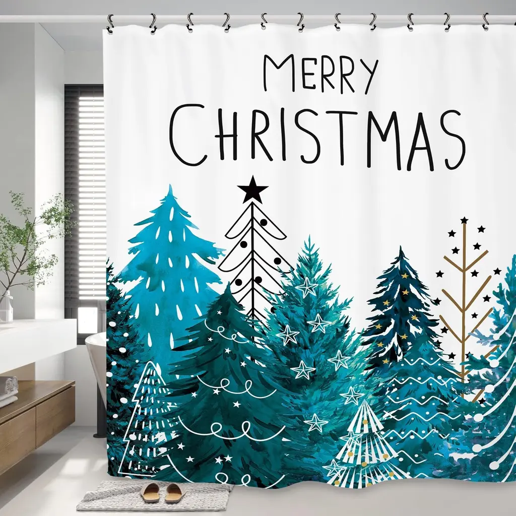 Enhance your bathroom with the enchanting Christmas Tree Forest Shower Curtain, featuring a stunning teal green design that captures the beauty of a winter woodland. Measuring 60x72 inches, this shower curtain showcases a serene landscape of tall, stylized Christmas trees, perfectly blending festive charm with a touch of elegance. Crafted from high-quality, water-resistant fabric, it provides not only style but also durability for long-lasting use. The rich teal color and intricate tree designs create a calming and inviting atmosphere, making it an ideal choice for your holiday decor or year-round winter theme. Transform your bathroom into a tranquil escape with the Christmas Tree Forest Shower Curtain, perfect for celebrating the season or simply enjoying the beauty of nature in your home. It's a delightful addition that brings warmth and cheer to your space while keeping it stylish and fresh.