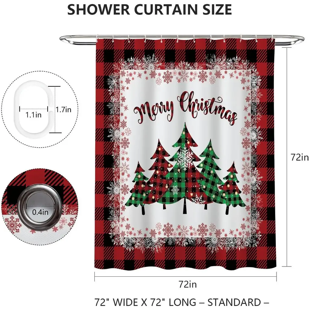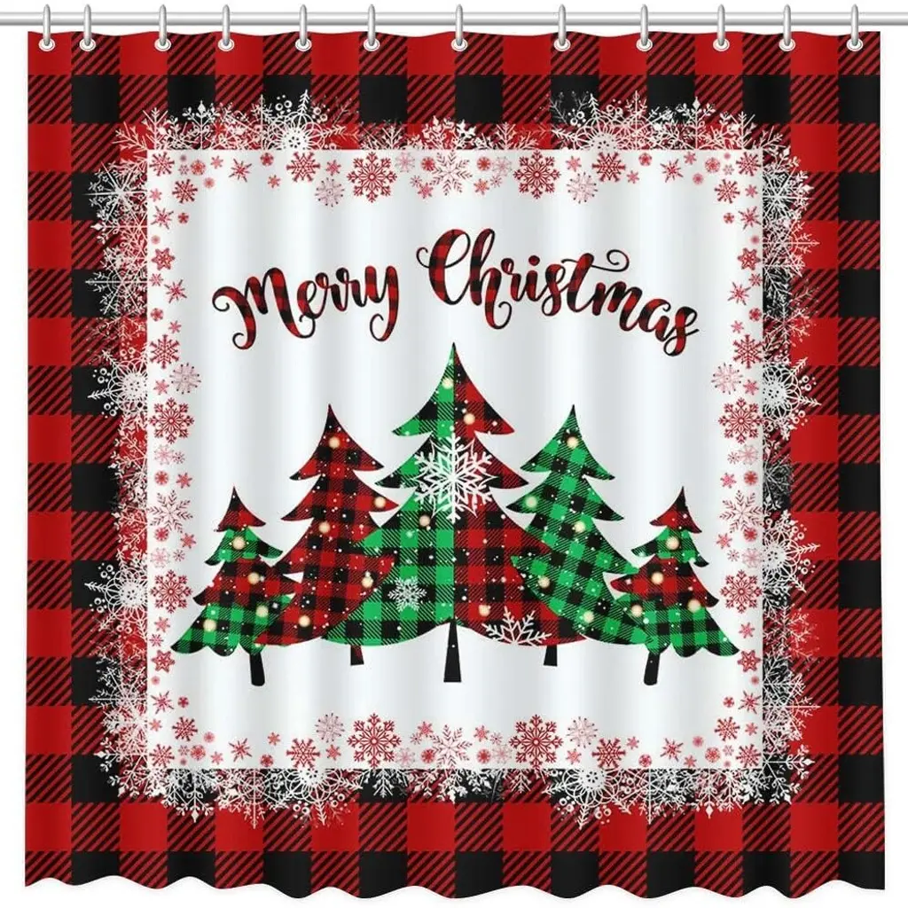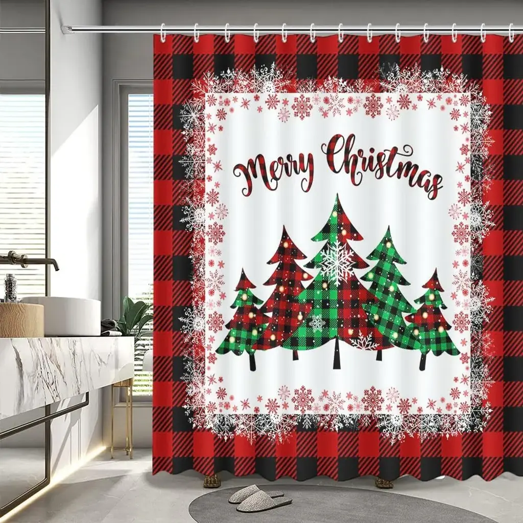 Add a cozy, rustic touch to your holiday decor with our Christmas Tree Shower Curtain, featuring a striking design of a beautifully decorated tree set against a classic red buffalo plaid background. Measuring 72" x 72", this stylish curtain brings warmth and festive charm to your bathroom. Made from high-quality, water-resistant fabric, it combines both style and functionality, ensuring privacy while preventing water splashes. The vibrant colors and cheerful imagery create a joyful atmosphere, perfect for celebrating the holiday season. Easy to hang and machine washable, this shower curtain is a delightful way to infuse your home with Christmas spirit. Transform your bathroom into a warm retreat with this charming decor piece!