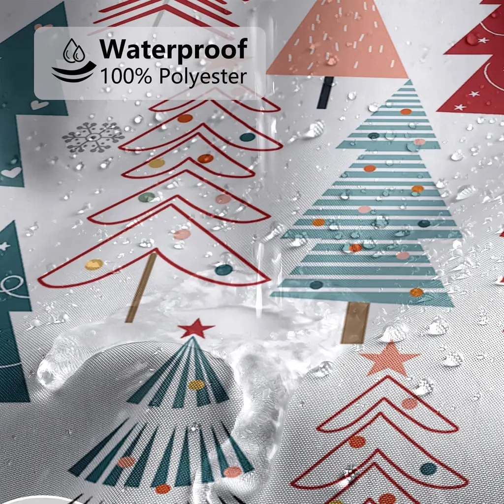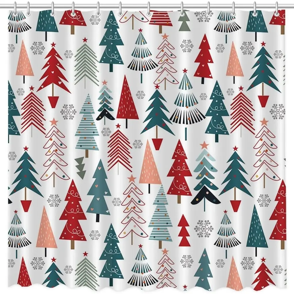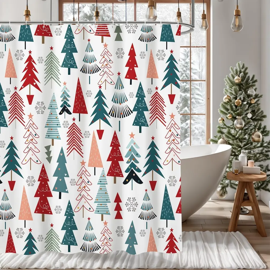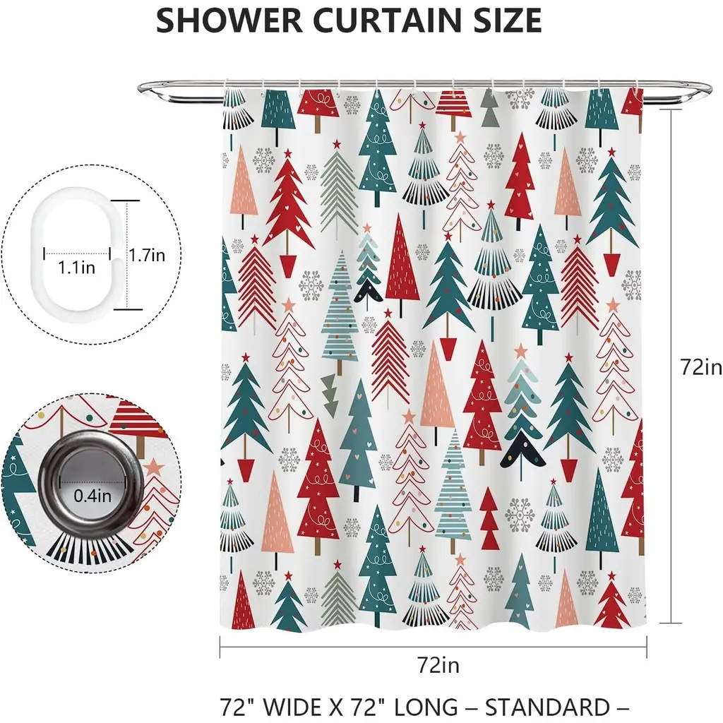 Christmas Tree Shower Curtain 72x72, Winter Snowflake, Washable Fabric - Multicolor