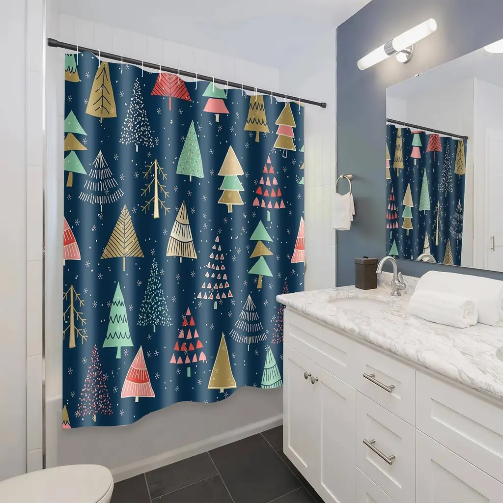 Add a festive touch to your bathroom with our Christmas Tree Shower Curtain, designed in stylish black and green hues. Measuring 72" x 72", this elegant curtain features a beautifully crafted Christmas tree that captures the essence of the holiday season. Made from high-quality, water-resistant fabric, it ensures both durability and easy maintenance for everyday use. The striking color contrast and intricate design create a warm, inviting atmosphere, transforming your bathroom into a cozy winter retreat. Celebrate the joy of the season with this charming shower curtain that brings a modern twist to your holiday decor!