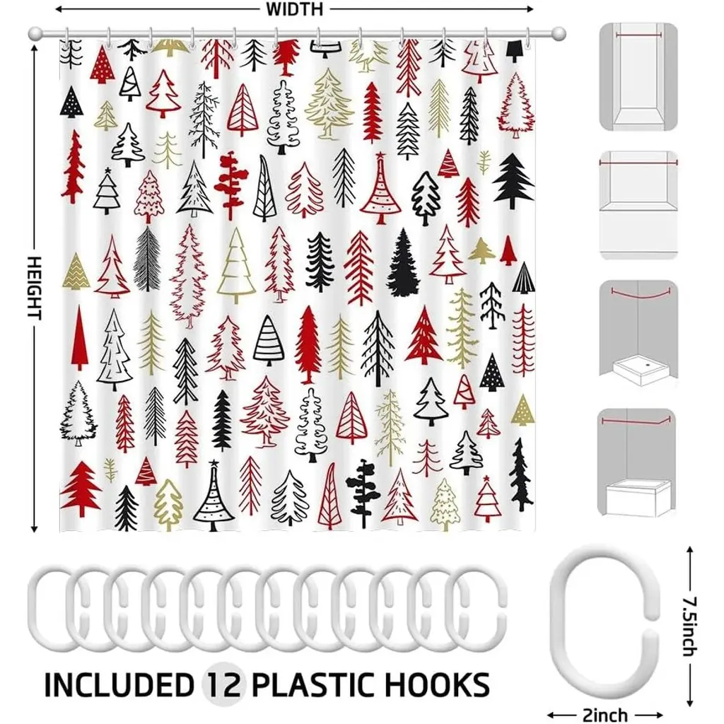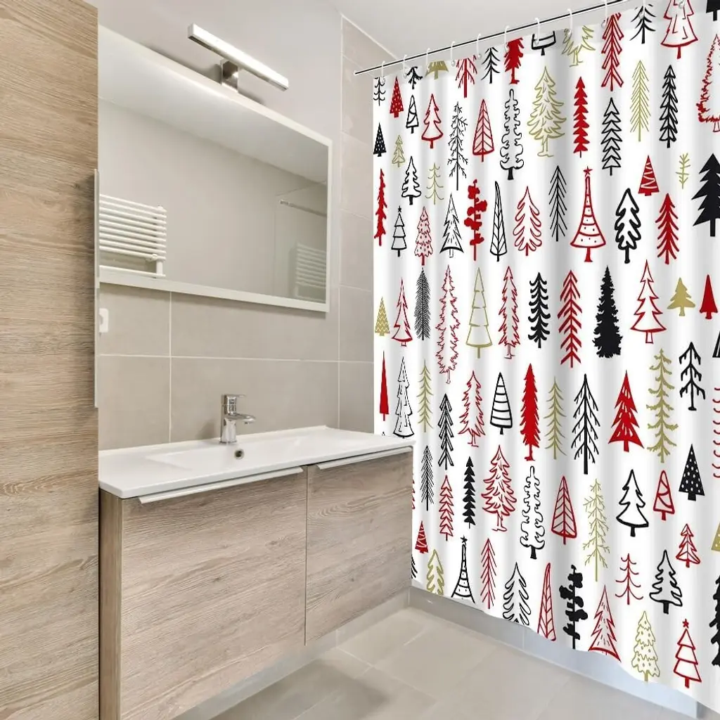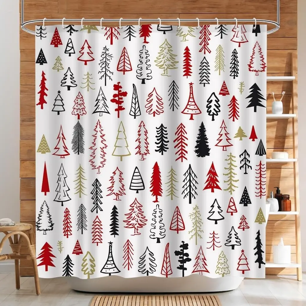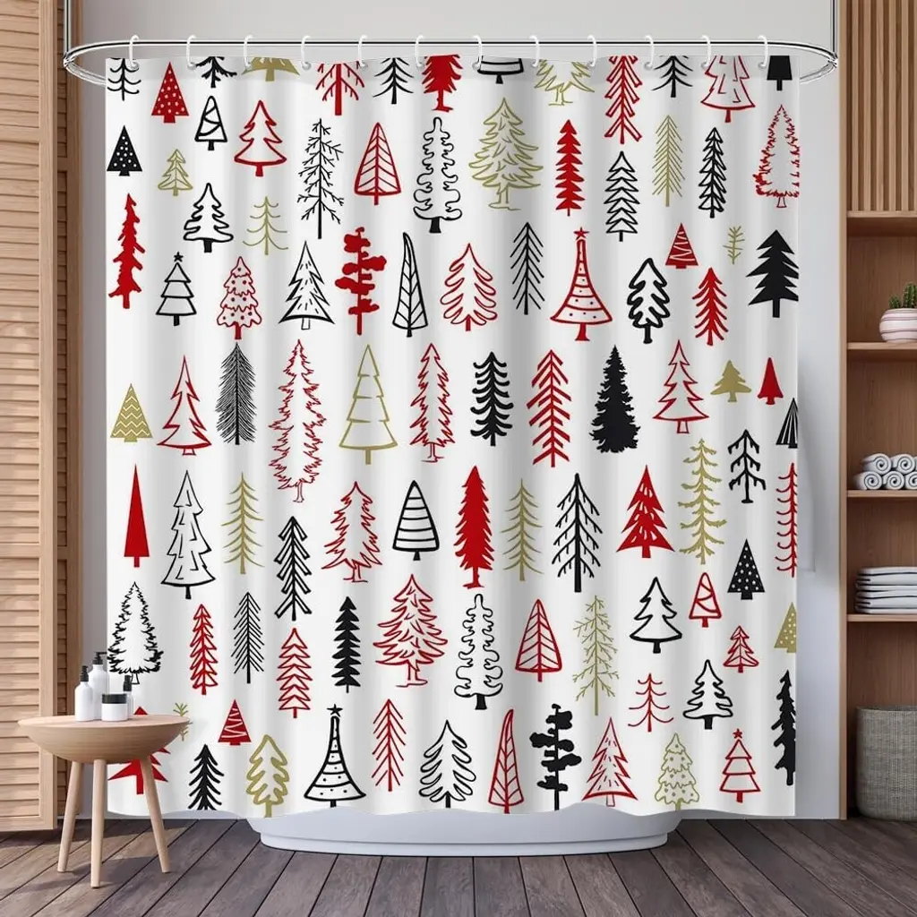 Transform your bathroom into a festive wonderland with our Christmas Tree Shower Curtain. Featuring a delightful design of red, black, and gold trees, this 72x72 inch curtain adds a cheerful touch to your holiday decor. Made from high-quality, water-resistant fabric, it not only enhances your space but also offers durability and easy maintenance. The vibrant colors and charming pattern create a warm, inviting atmosphere, making your daily routine feel special during the holiday season. Elevate your bathroom's style with this beautiful shower curtain that perfectly captures the spirit of Christmas!