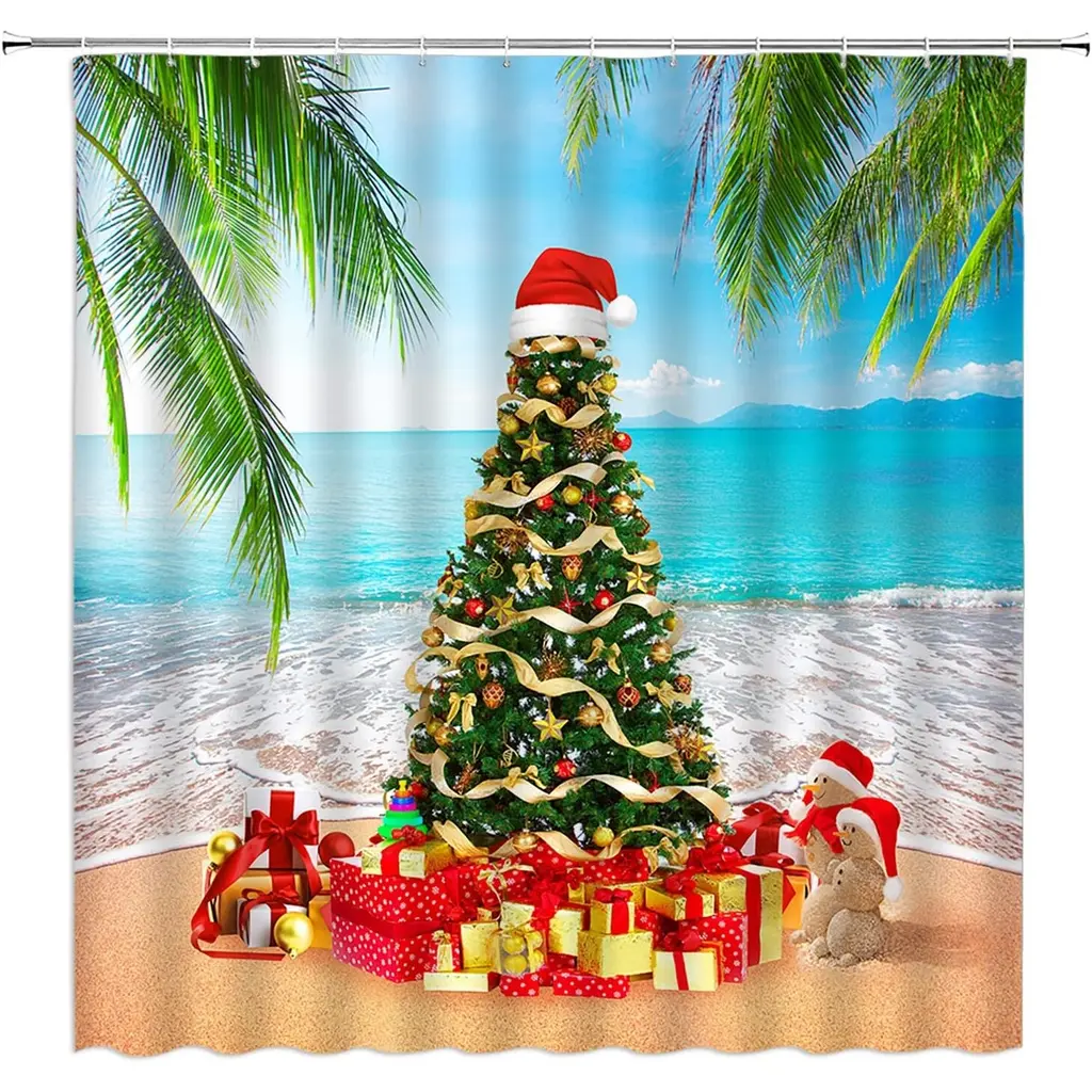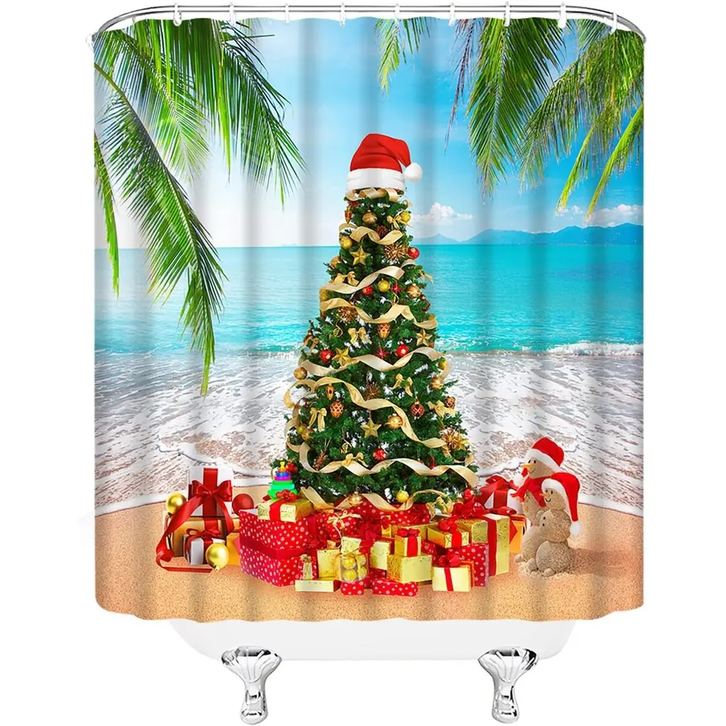 Christmas Tree Shower Curtain - Tropical Beach Decor, 70x70 Inches - Multicolor