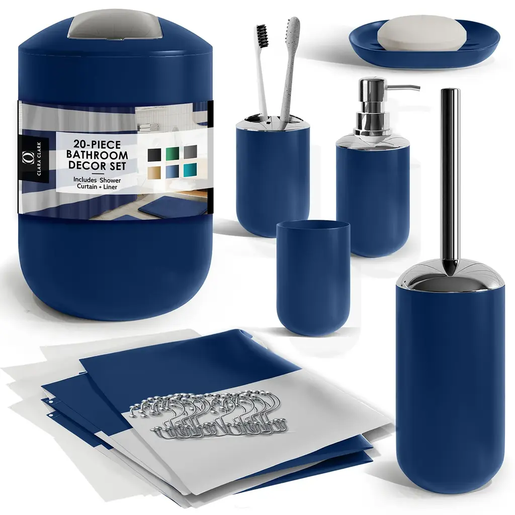 Clara Clark 20 Piece Complete Bathroom Accessories Kit With Shower Curtain Set - Navy