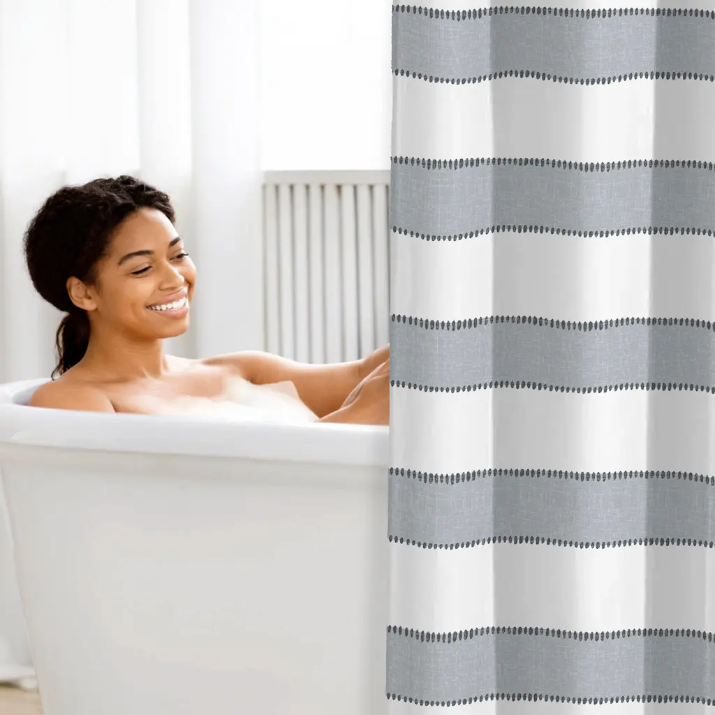 An airy addition to any bathroom, the Aspen Shower Curtain features a striped design with a modern touch. This 100% cotton bath curtain is an easy way to update your bathroom. Clean Design Home is an allergen-aware lifestyle brand that helps bring a mix of style and wellness to your bathroom. Curated for a healthy home.