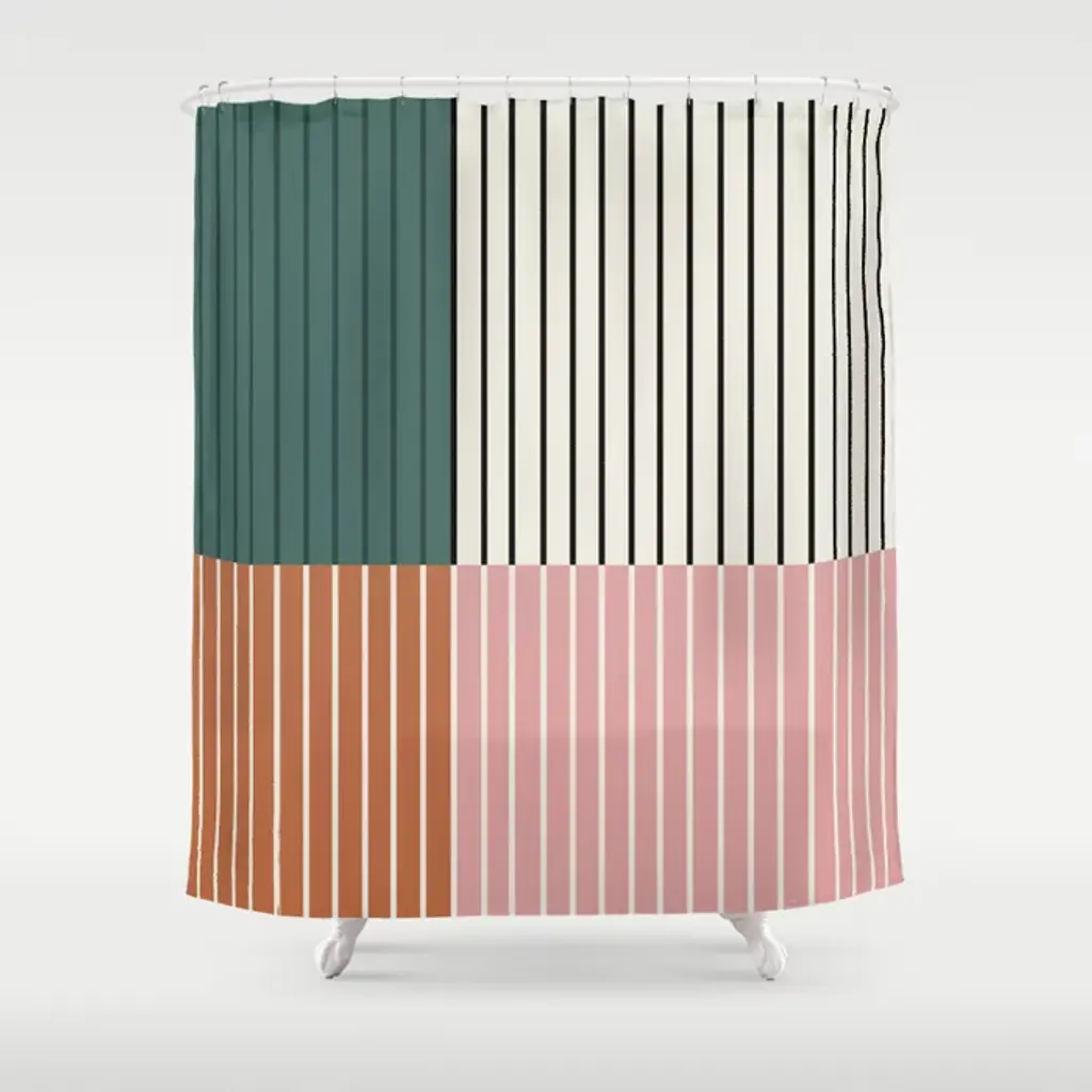 Color Block Line Abstract Ii Vintage Neutral Shower Curtain