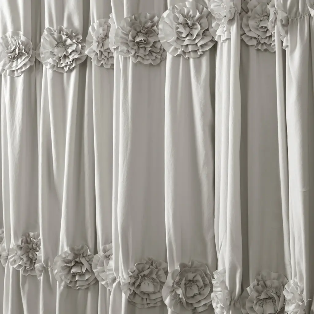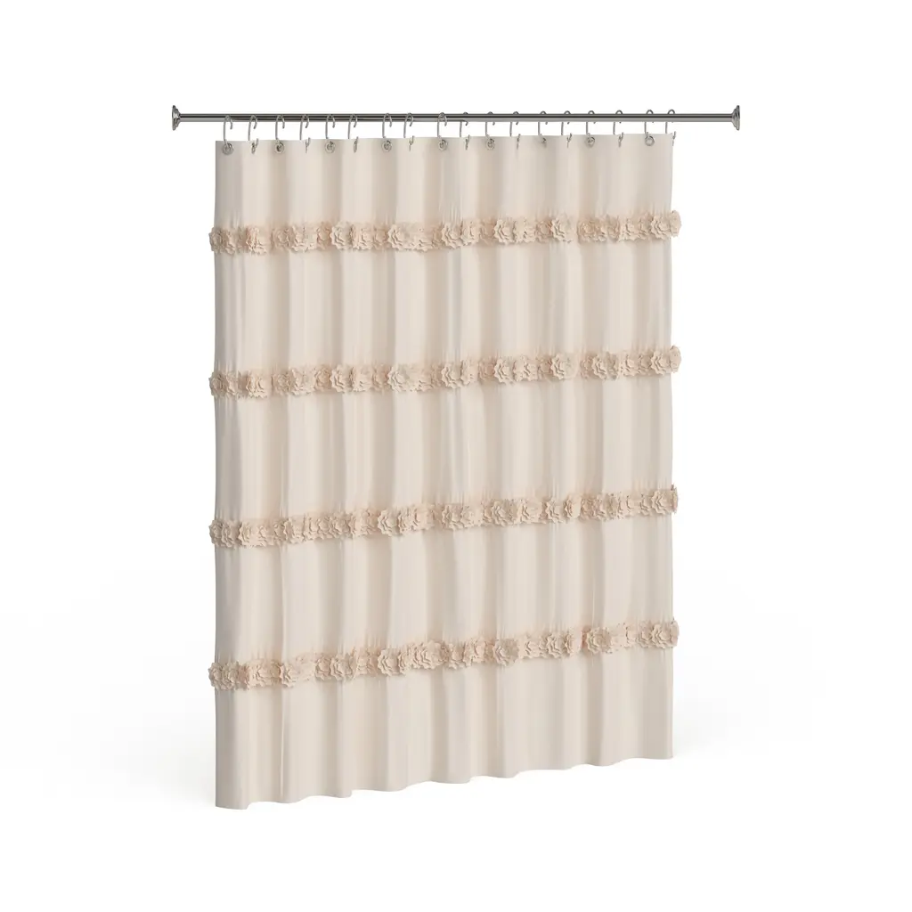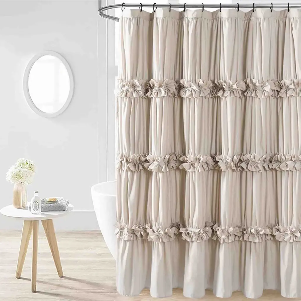 Add a charming and unique touch to your bathroom decor with this shower curtain. The lovely ruffled design and textured stripe pattern evoke a traditional yet chic style that will elevate your space. Choose from ivory or white to match your bathroom's aesthetic. The curtain is made of 100-percent polyester and is machine washable for easy maintenance.Features:Other: