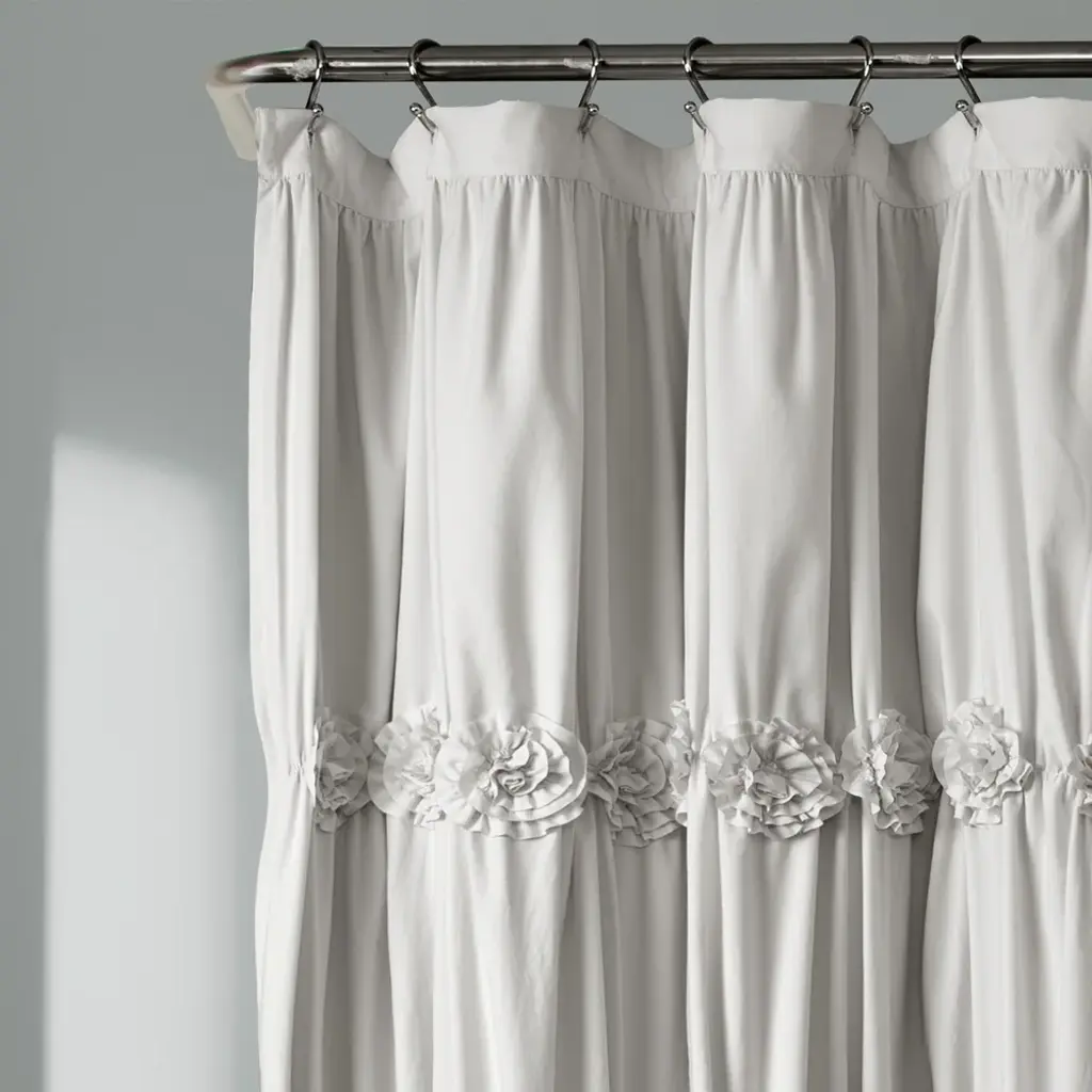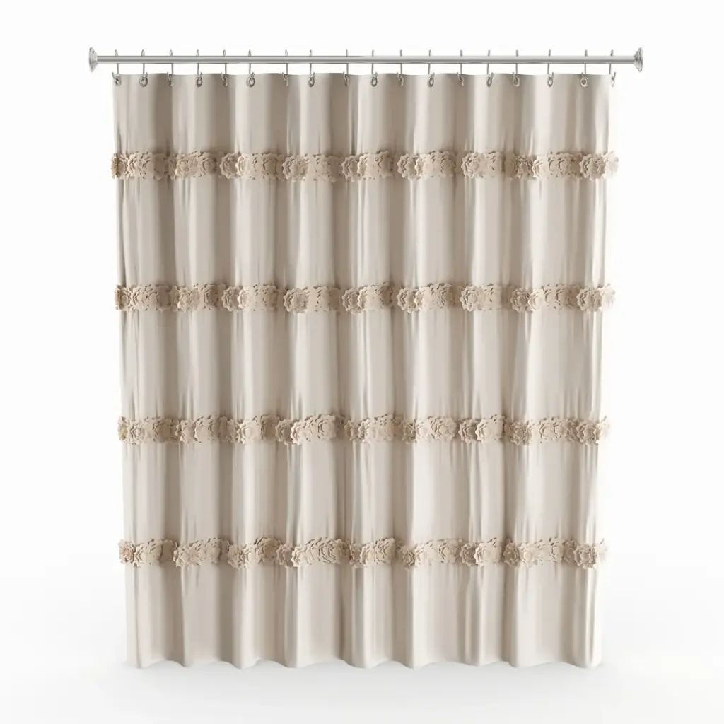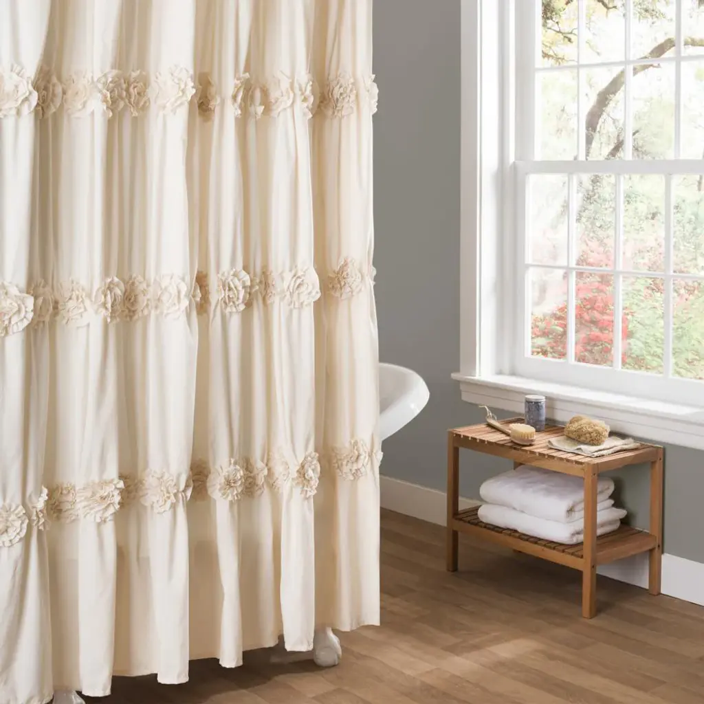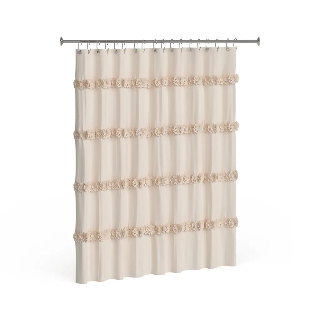Add a charming and unique touch to your bathroom decor with this shower curtain. The lovely ruffled design and textured stripe pattern evoke a traditional yet chic style that will elevate your space. Choose from ivory or white to match your bathroom's aesthetic. The curtain is made of 100-percent polyester and is machine washable for easy maintenance.Features:Other:
