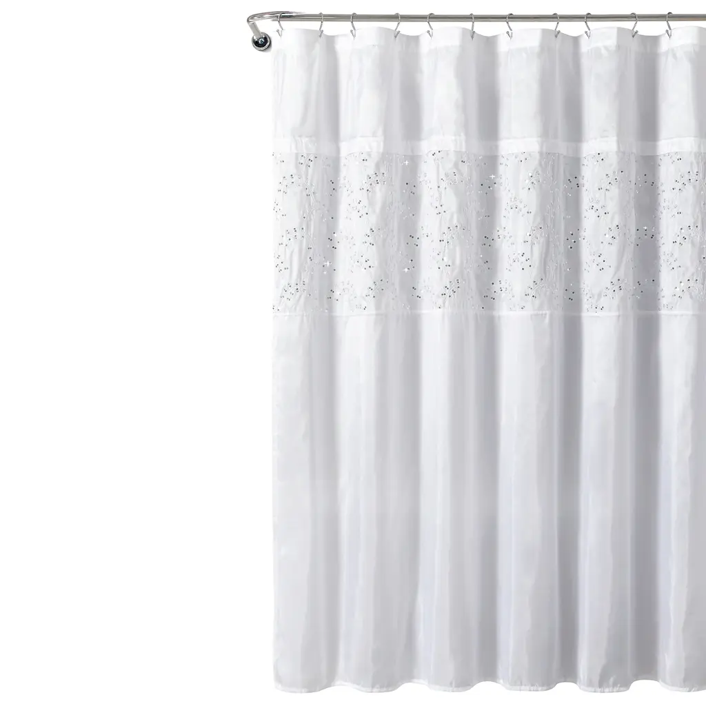 The deep red tone of this shower curtain will brighten your bathroom in the morning with its vibrant energy, and the embroidery and sequin details make it a stylistic choice for your decor. Made of 100-percent durable polyester that will stand the test of time. Features: