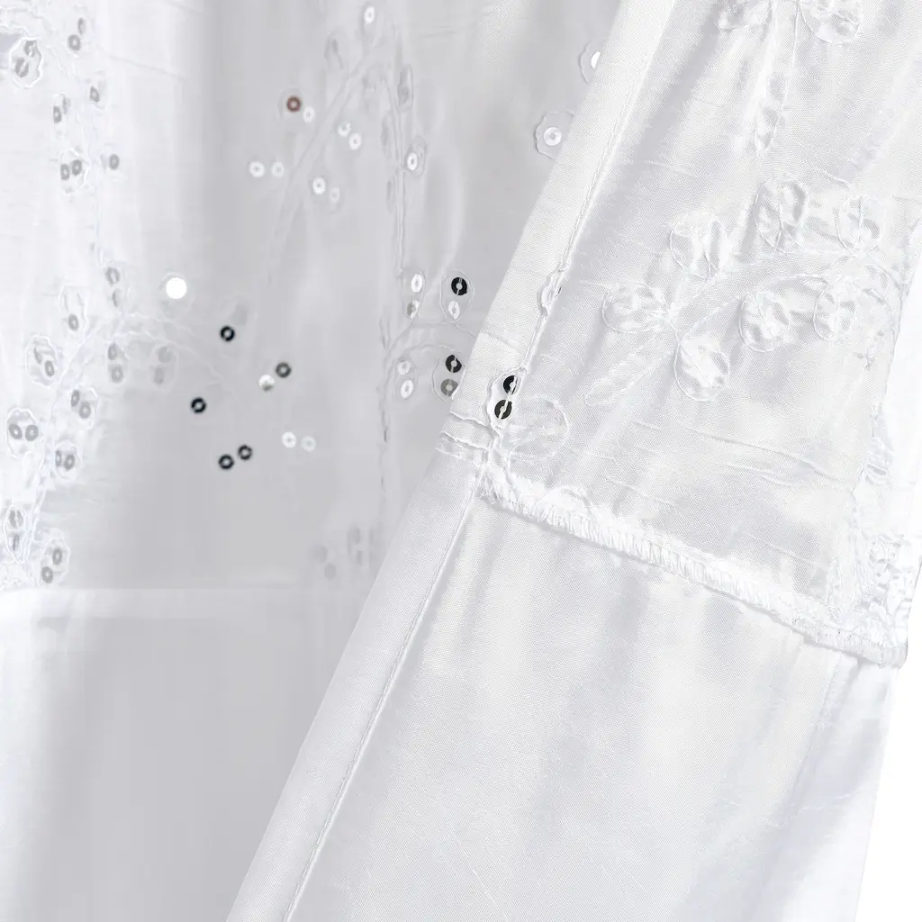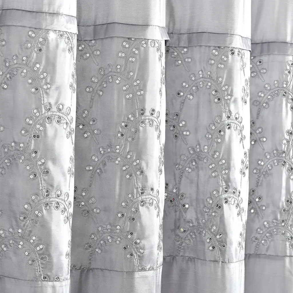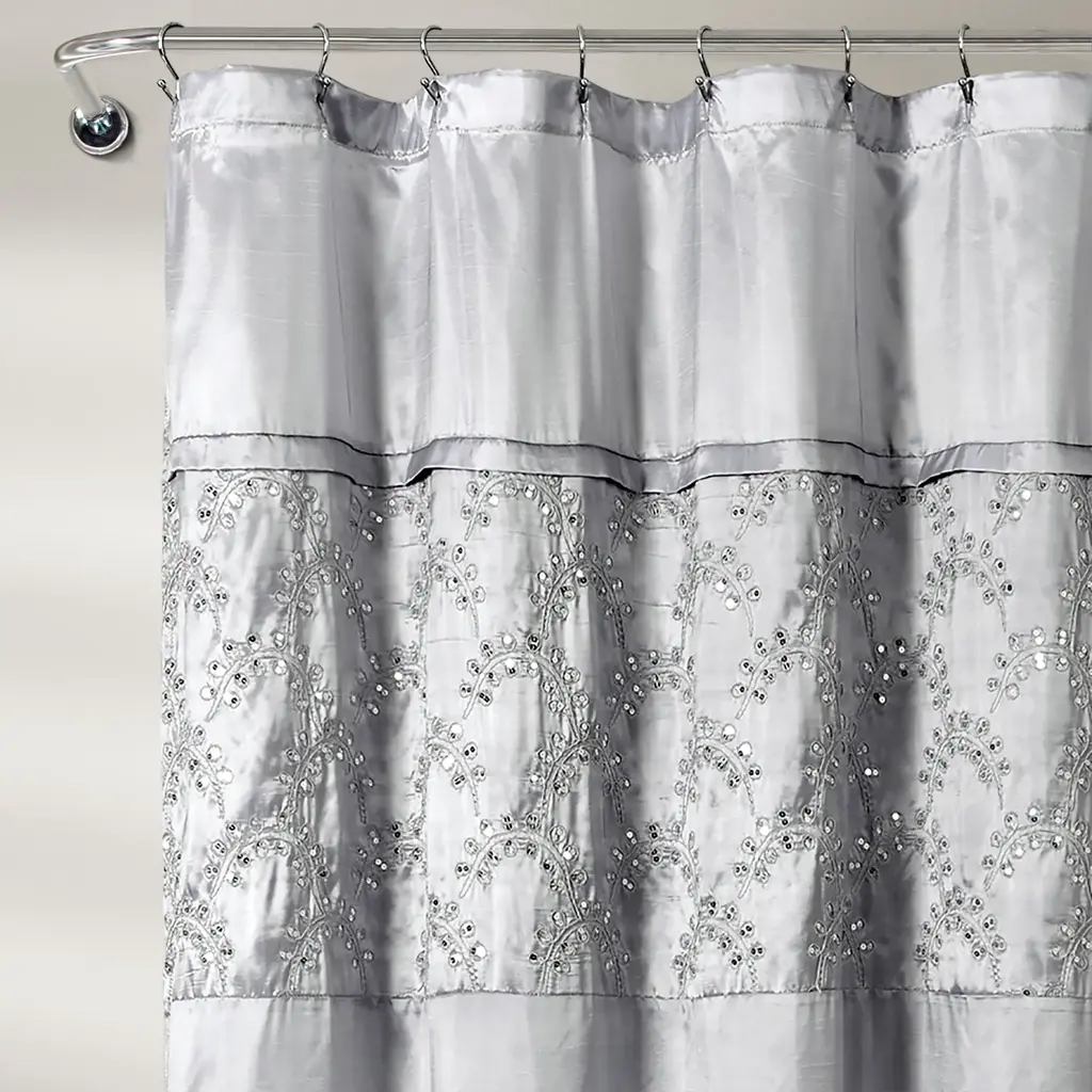 The deep red tone of this shower curtain will brighten your bathroom in the morning with its vibrant energy, and the embroidery and sequin details make it a stylistic choice for your decor. Made of 100-percent durable polyester that will stand the test of time. Features: