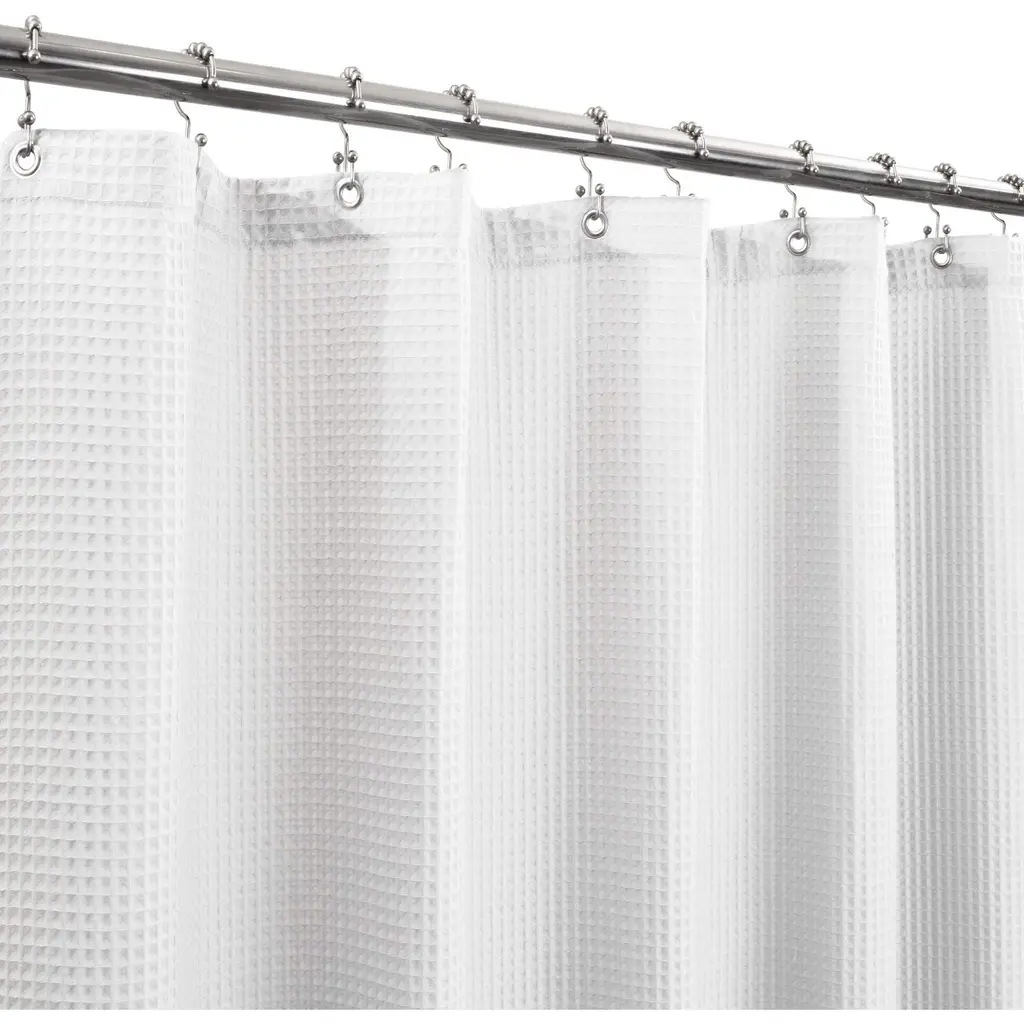 Cotton Blend Honeycomb Shower Curtain, 72"x72", White, Soft & Washable
