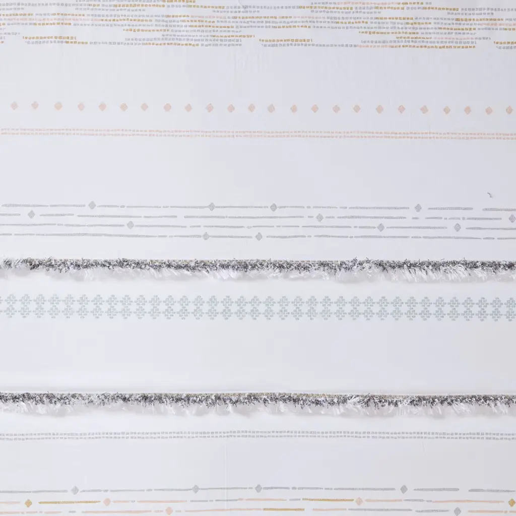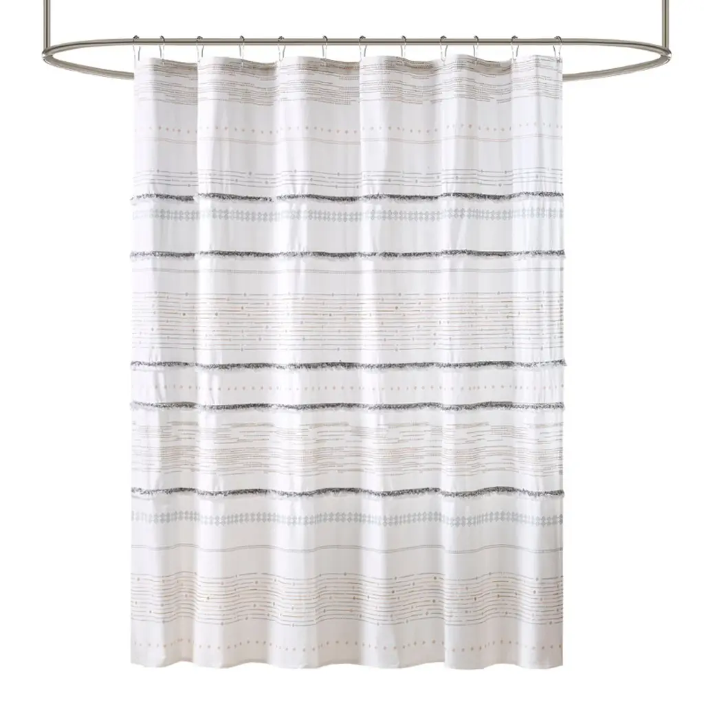The INK+IVY Nea Cotton Printed Shower Curtain with Trims offers a stunning contemporary update to your bathroom. This 100% cotton shower curtain features tassels and a printed stripe pattern creating a chic boho look. Finished with 12 button holes at the top, this shower curtain is machine washable for easy care. Coordinating bedding set is available and sold separately.Product Details72x72"1 Shower Curtain:72" W x 72" LMaterial100% cotton, printed, with 5 rows of tassel trims