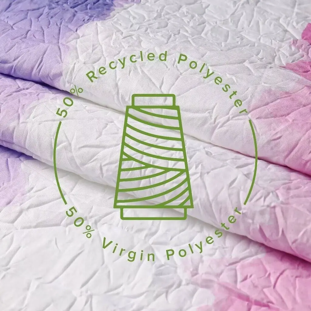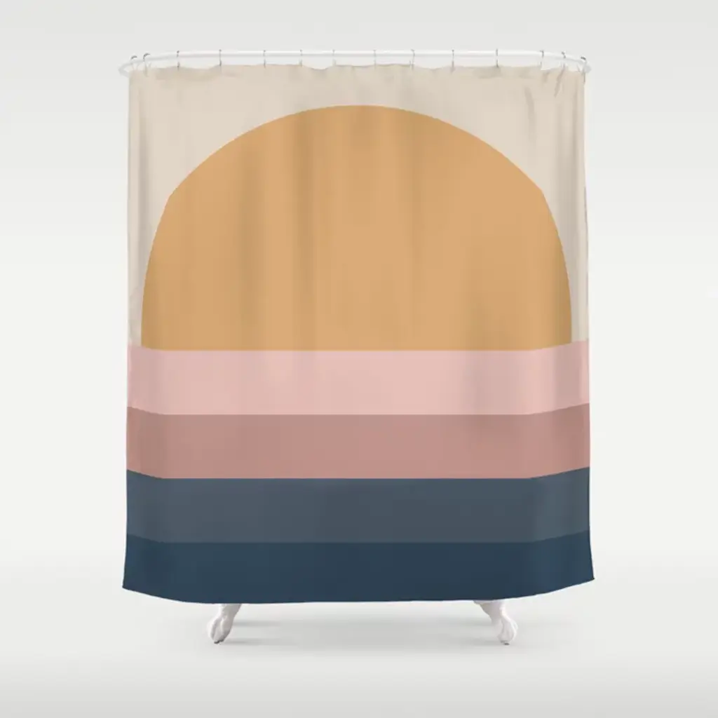 This shower curtain features a unique crinkle stripe texture that adds depth to the fabric. The crinkle effect gives the impression of gentle waves or folds, creating a tactile and visually interesting appearance. Perfect for the beach house, easy to transform your daily routine into holiday heaven. Made from 50% recycled polyester and 50% virgin polyester, the shower curtain is water repellent and easy to maintain. Bottom corner weights help keep the shower curtain in place. Features: Dimensions: